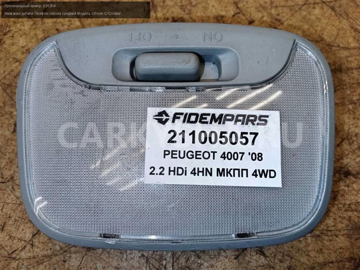 Название детали Плафон салона средний на Модель Citroen C-Crosser Светильник. Фонарь. 6362R4 2.2 HDi 16 4HN 5 SPEED MT 4WD 4WD Номер по складу:211005057 Подходит также на: Mitsubishi Outlander XL,Citroen C-Crosser,KIA Sorento I