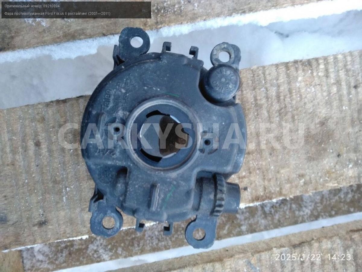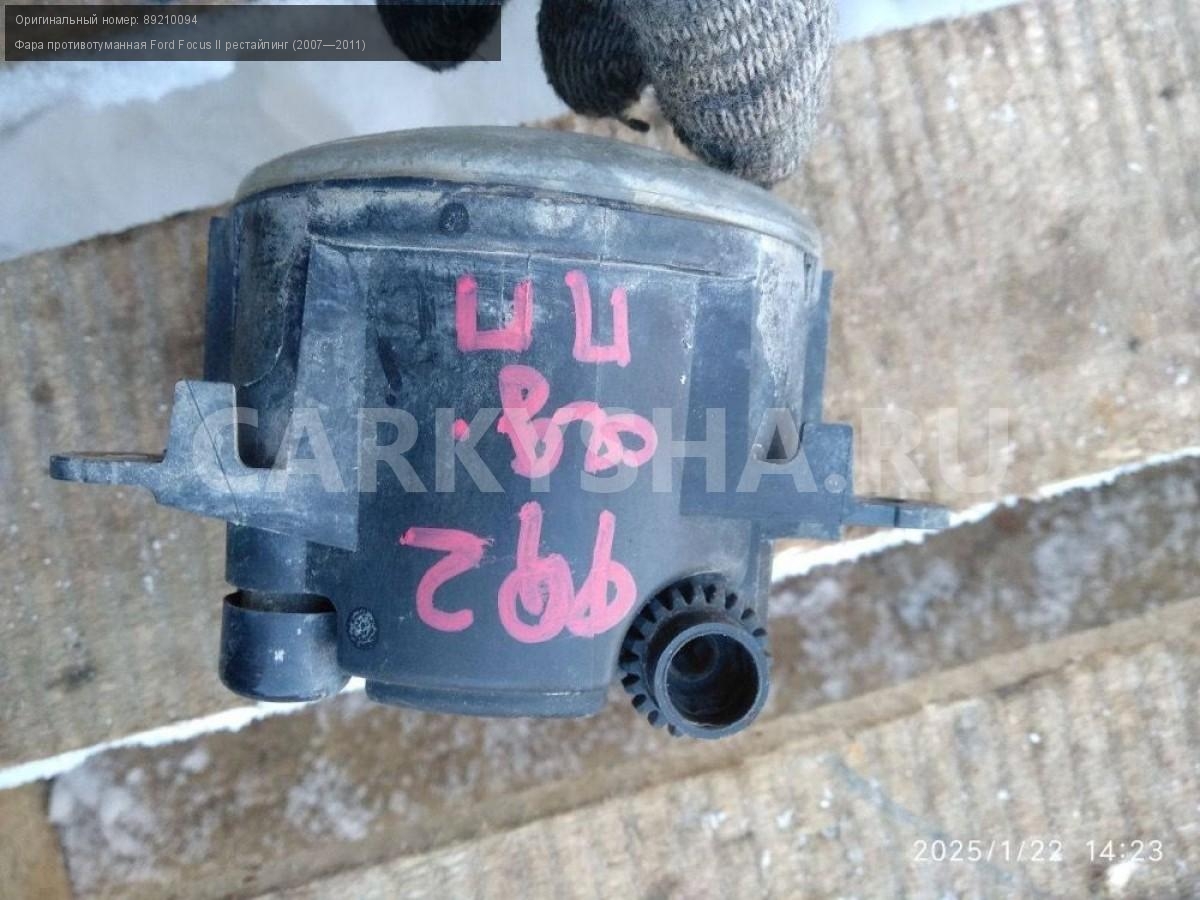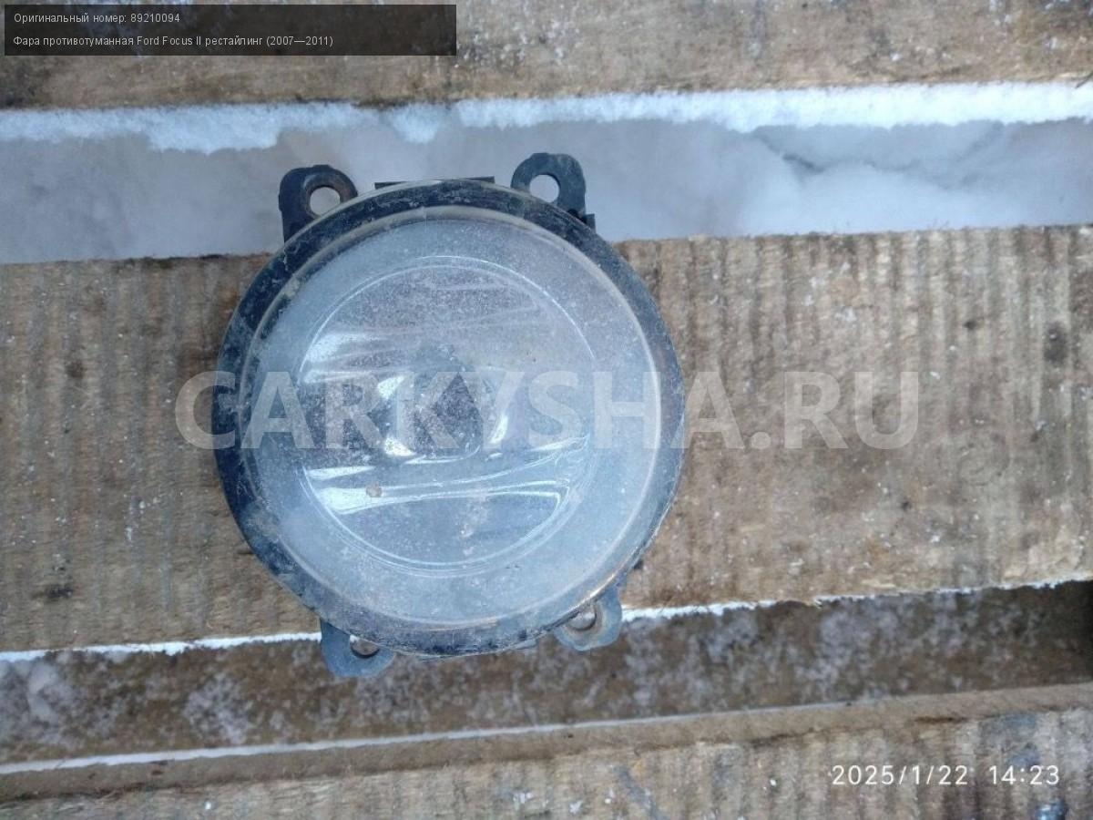 Ford Focus II рестайлинг, птф передняя правая.\nАртикул: 6725\n\nОриг. номер: 89210094\nПроизводитель: FORD\nПримечание:Форд Фокус 2 рестайлинг, противотуманная фара передняя правая, птф, б/у. \n\nМарка: Ford\nМодель: Focus II рестайлинг (2007—2011)\nГод выпуска: 2008\nКузов тип: Седан\nДвигатель номер: SHDA\nМодель двигателя: инжектор\nОбъем: 1.6\nТопливо: Бензин\nКоробка: Механика\nЦвет: Черный\nПраво/Лево: Право\nПеред/Зад: Перед\nСовместимости: Ford Focus II рестайлинг (2007—2011) 1.6 MT (100 л.с.)\nСовместимость: