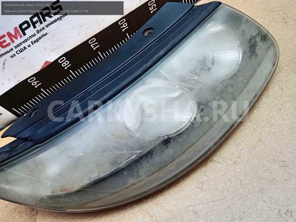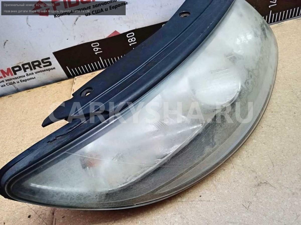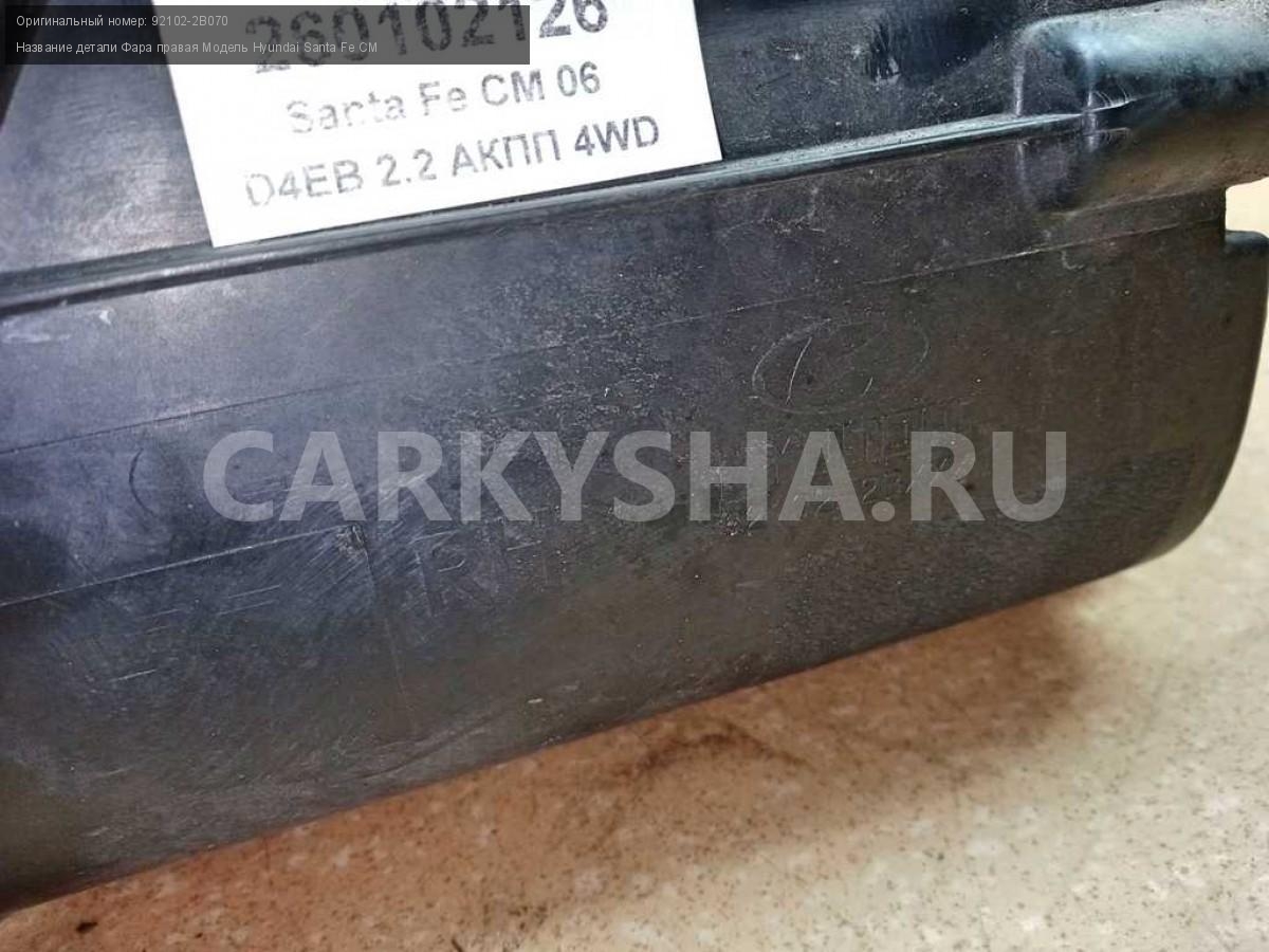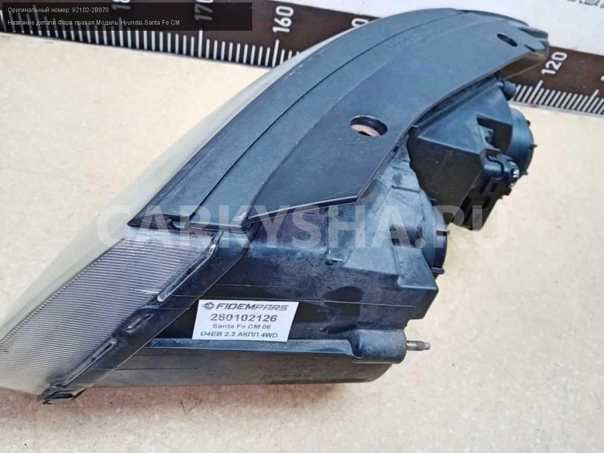 Название детали Фара правая на Модель Hyundai Santa Fe CM Правый руль. Галогеновая. Фонарь передний. 92102-2B070 D4EB 2.2 дизель АКПП - 5 SPEED 4WD 4WD Номер по складу:260102126