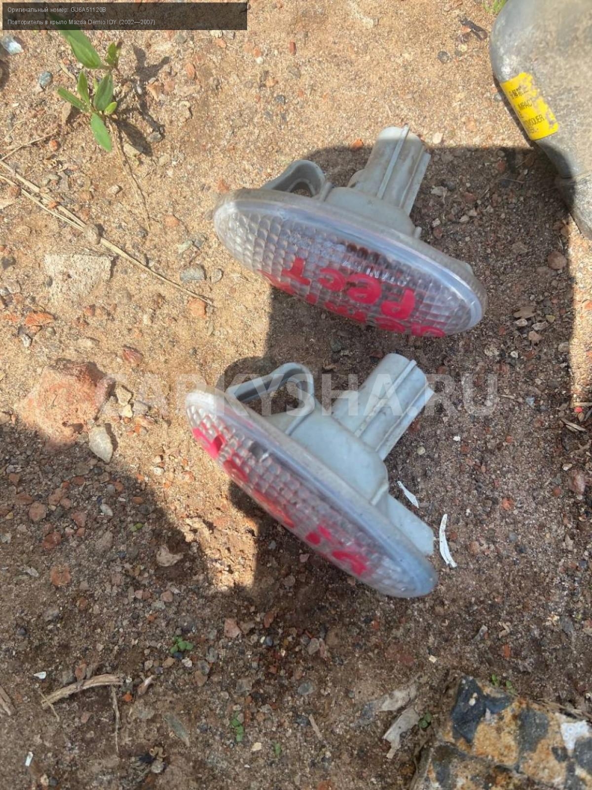 Mazda Demio DY3 , повторитель поворотов в крыло.\nАртикул: 5092\n\nОриг. номер: GJ6A51120B\nПроизводитель: MAZDA\nПримечание:Мазда Демио DY3, повторитель поворотов в крыло, б/у, цена за пару. \n\nМарка: Mazda\nМодель: Demio IDY (2002—2007)\nГод выпуска: 2003\nКузов номер: DY3W254283\nКузов тип: Хетчбэк\nДвигатель номер: DY3\nМодель двигателя: инжектор\nОбъем: 1.4\nТопливо: Бензин\nКоробка: Автомат\nЦвет: Синий\nПраво/Лево: Право/Лево\nПеред/Зад: Перед\nСовместимости: Mazda Demio IDY (2002—2007) 1.4 AT (91 л.с.)\nСовместимость: