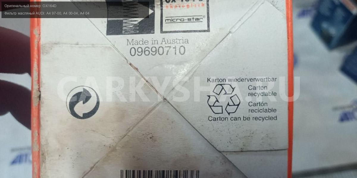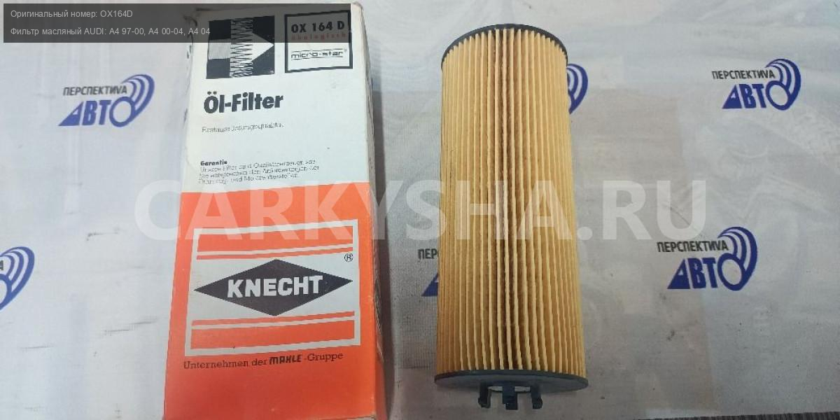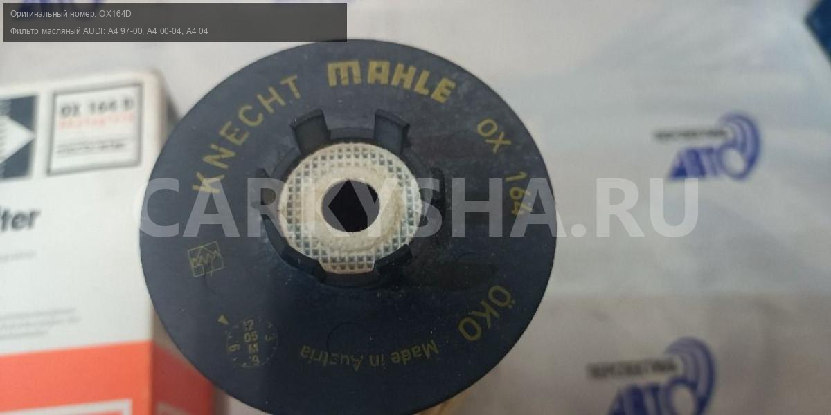 Примечание:Фильтр масляный AUDI: A4 97-00, A4 00-04, A4 04-, A4 Avant 97-01, A4 Avant 01-04, A4 Avant 04-, A4 кабрио 02-, A6 97-05, A6 Avant 97-05, A8 97-02, Allroad 00-05, Mahle OX164D