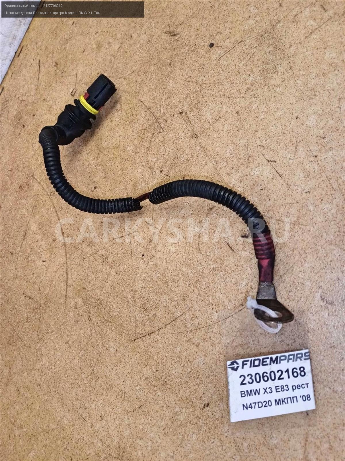 Название детали Проводка стартера на Модель BMW X1 E84 Системы предпускового подогрева.. Шлейф. Коса. 12427798012 N47D20 2.0 дизель 6 SPEED MT 4WD 4WD Номер по складу:230602168 Подходит также на: BMW X1 E84