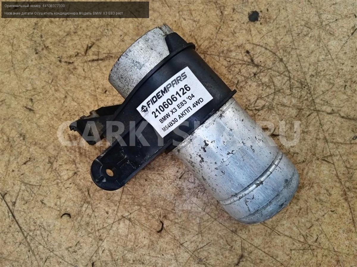 Название детали Осушитель кондиционера на Модель BMW X3 E83 рест Радиатор. Конденсатор. 64538377330 M54B30 бензин 5 SPEED AT 4WD A5S390R 4WD Номер по складу:210606126 Подходит также на: BMW X3 E83 рест,BMW 3-серия E46