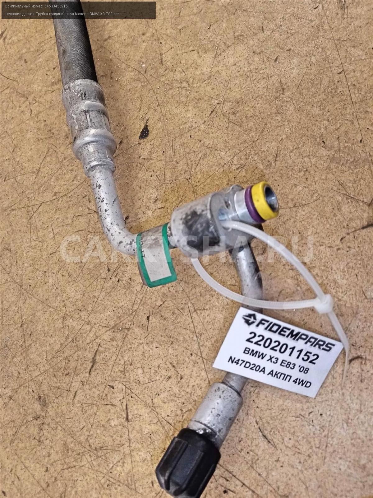 Название детали Трубка кондиционера на Модель BMW X3 E83 рест Шланг. 64533455915 N47D20 6 SPEED MT 4WD Номер по складу:220201152 Подходит также на: BMW X3 E83 рест