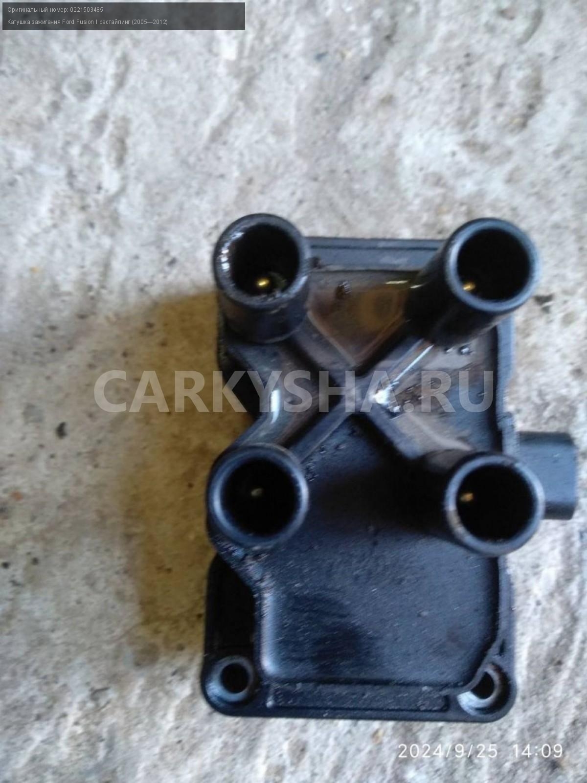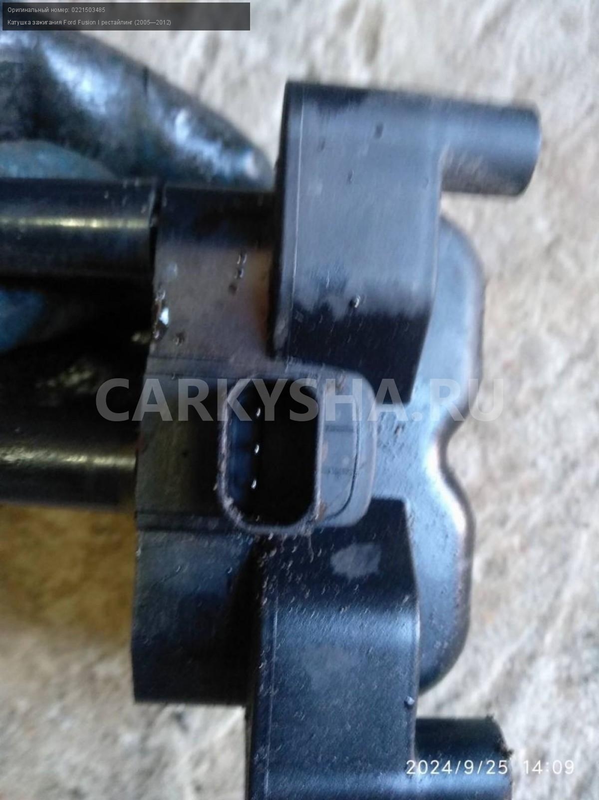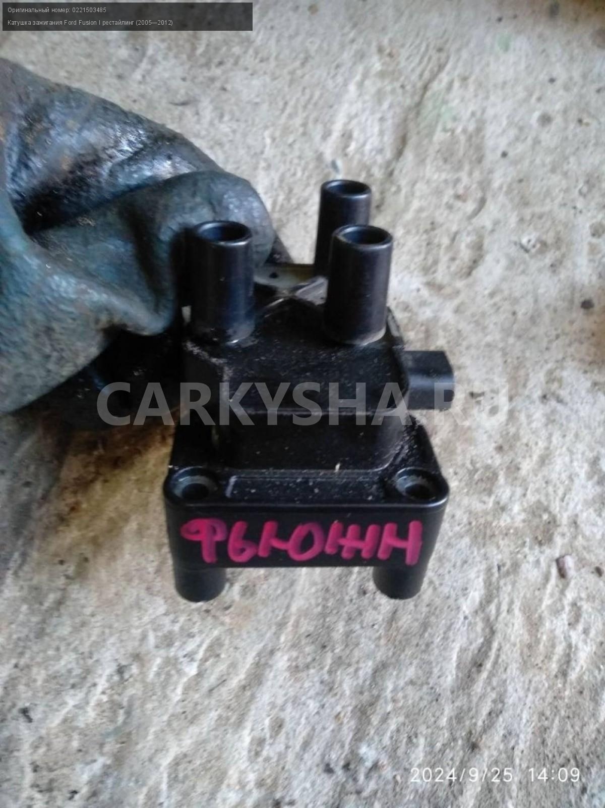 Ford Fusion, Катушка зажигания.\nАртикул: 5764\n\nОриг. номер: 0221503485\nПроизводитель: FORD\nПримечание:Форд Фьюжн, Катушка зажигания, б/у. \n\nМарка: Ford\nМодель: Fusion I рестайлинг (2005—2012)\nГод выпуска: 2008\nКузов тип: Хетчбэк\nДвигатель номер: FYJA\nМодель двигателя: инжектор\nОбъем: 1.6\nТопливо: Бензин\nКоробка: Механика\nЦвет: Зеленый\nСовместимости: Ford Fusion I рестайлинг (2005—2012) 1.6 MT (101 л.с.)\nСовместимость: