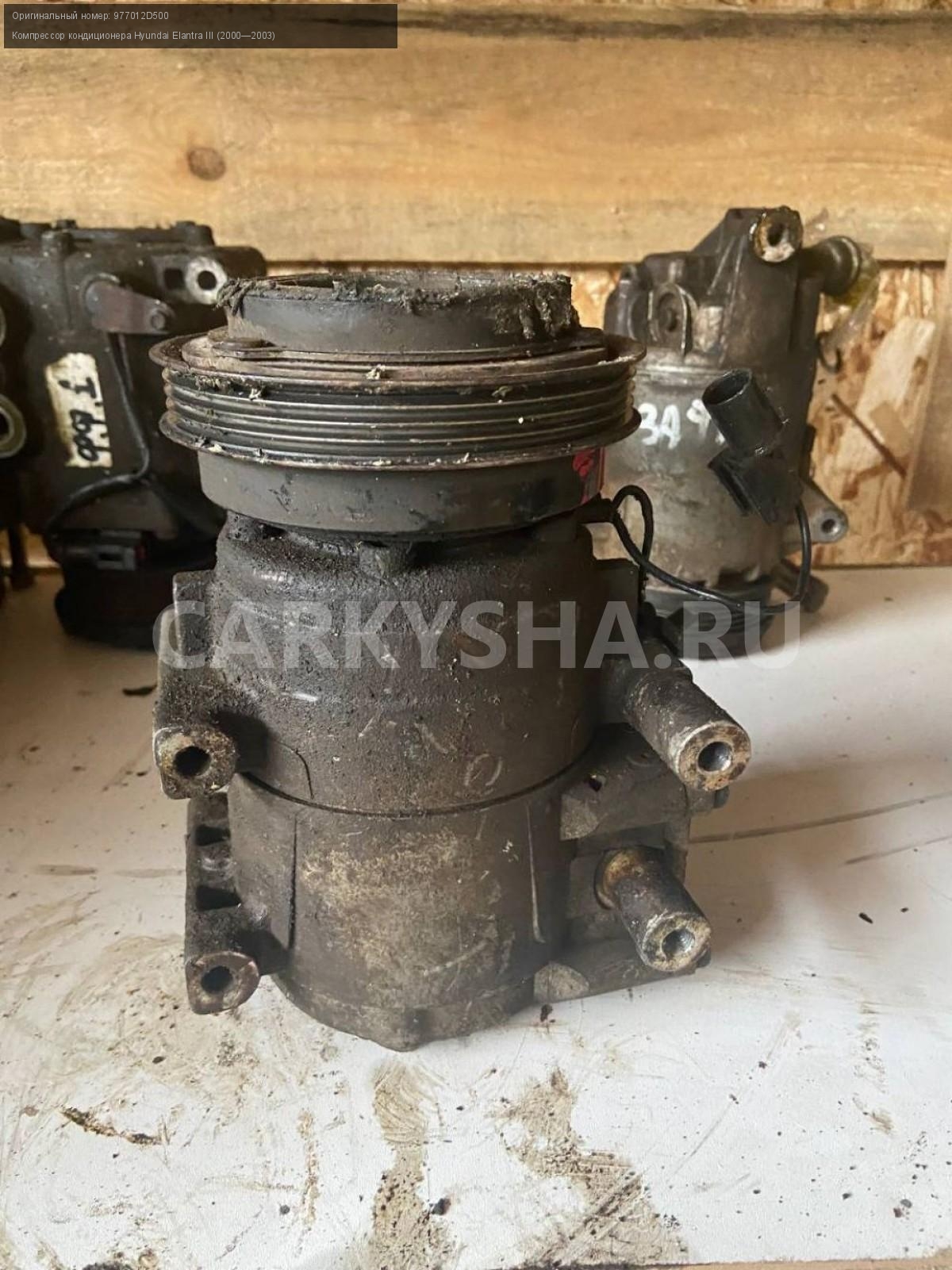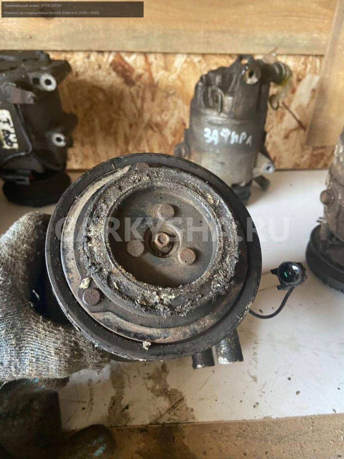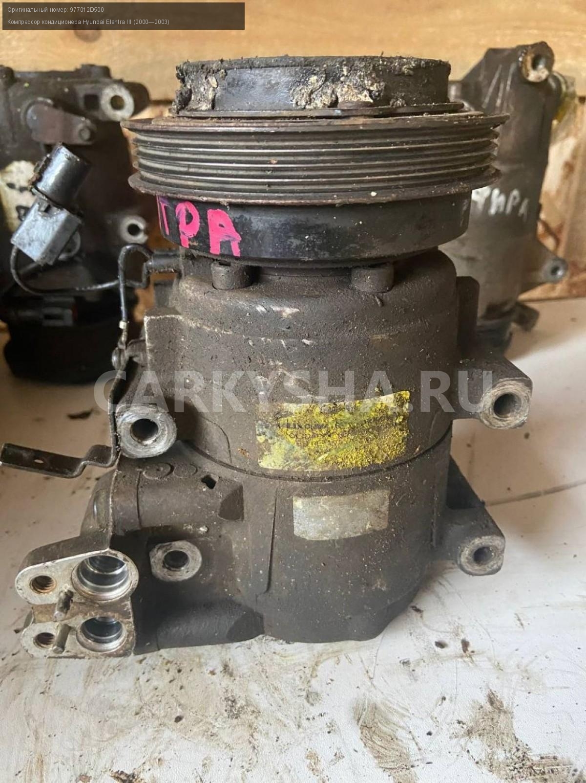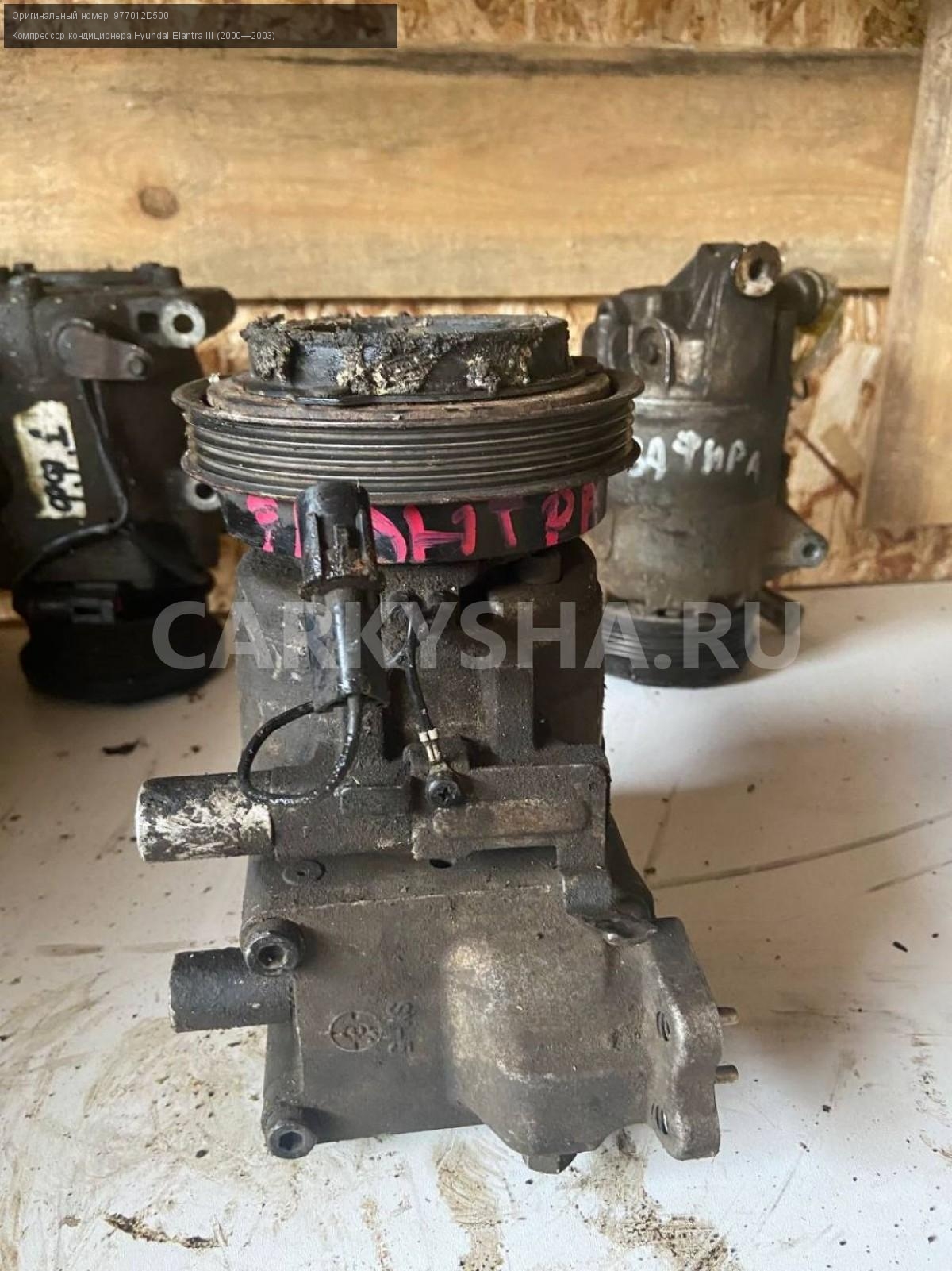 Hyundai Elantra XD, компрессор кондиционера.\nАртикул: 4361\n\nОриг. номер: 977012D500\nПроизводитель: Hyundai-KIA\nПримечание:Хендай Элантра XD, компрессор кондиционера на запчасти, бу. \n\nМарка: Hyundai\nМодель: Elantra III (2000—2003)\nГод выпуска: 2003\nКузов тип: Седан\nДвигатель номер: G4GC\nМодель двигателя: инжектор\nОбъем: 2.0\nТопливо: Бензин\nКоробка: Автомат\nЦвет: Серебро\nСовместимости: Hyundai Elantra III (2000—2003) 2.0 AT (139 л.с.)\nСовместимость:
