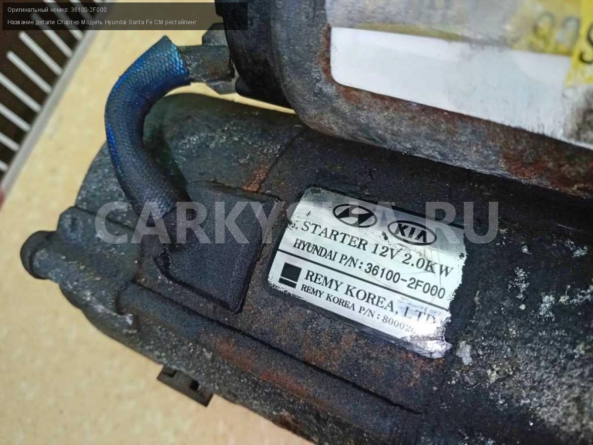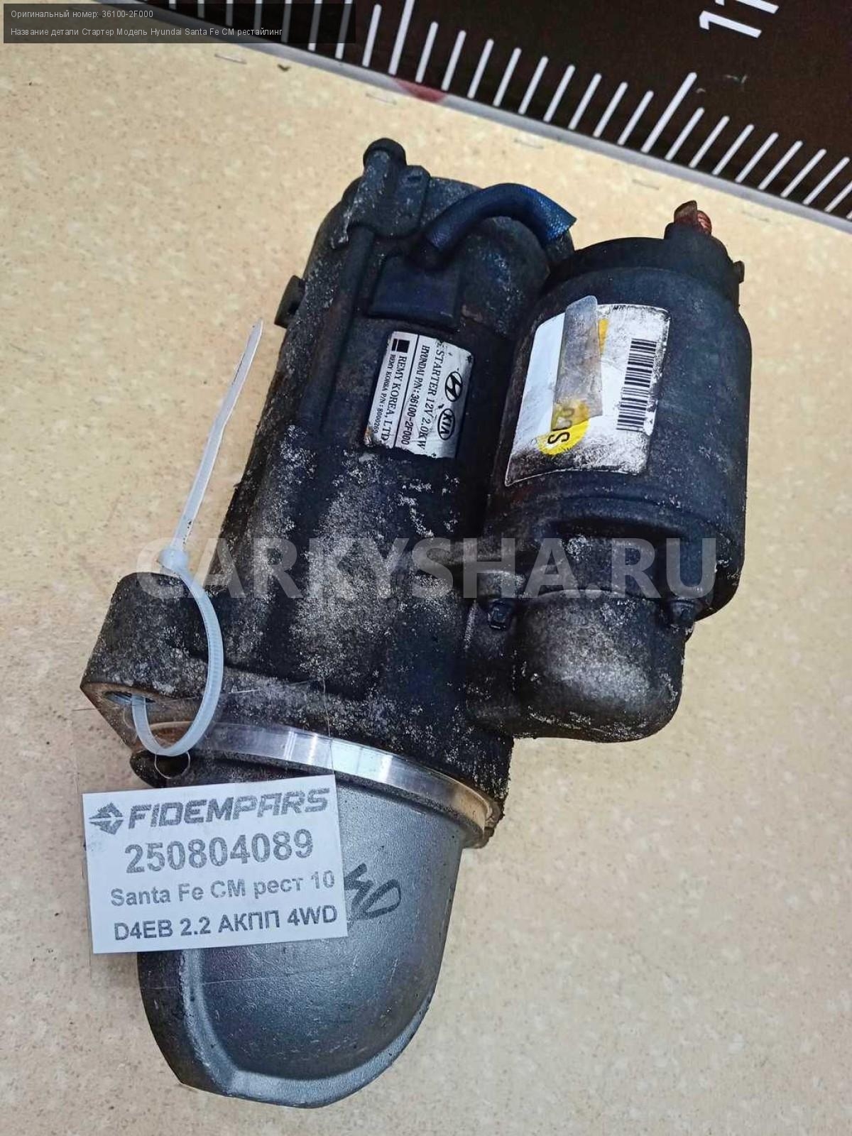 Название детали Стартер на Модель Hyundai Santa Fe CM рестайлинг REMY. 12V 2,0Kw 36100-2F000 D4HB 2.2 дизель АКПП - 6 SPEED 4WD 4WD Номер по складу:250804089