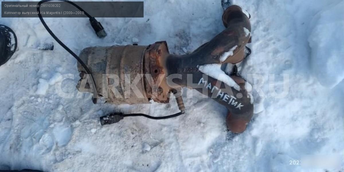 Kia magentis 1 2.0 выпускной коллектор\nАртикул: 471\n\nОриг. номер: 2851038202\nПримечание:Kia magentis 1 2.0 выпускной коллектор.НАЛИЧИЕ ЗАПЧАСТИ УТОЧНИТЕ ПО ТЕЛЕФОНУ ИЛИ В СООБЩЕНИЯХ,б/у, а так же множество авто в разборе, работаем с регионами отправка тк, выкуп авто после дтп по всей России, отправка тк осуществляется после 100% оплаты, наложенным платежом не работаем, стоимость доставки не рассчитываем\n\nМарка: Kia\nМодель: Magentis I (2000—2003)\nКузов тип: Седан\nОбъем: 2.0\nТопливо: Бензин\nКоробка: Механика\nСовместимости: Kia Magentis I (2000—2003) 2.0 MT (136 л.с.)\nСовместимость: