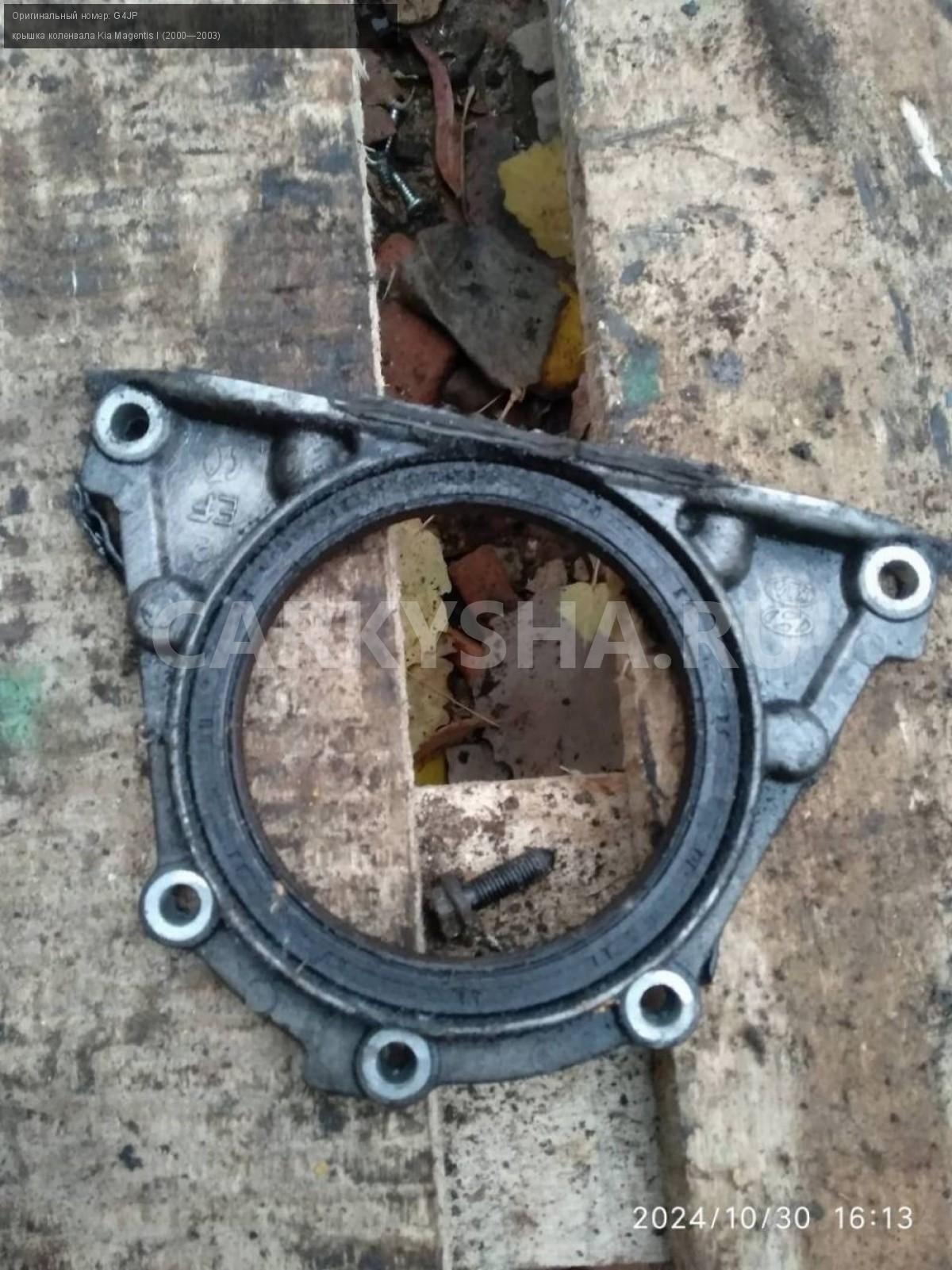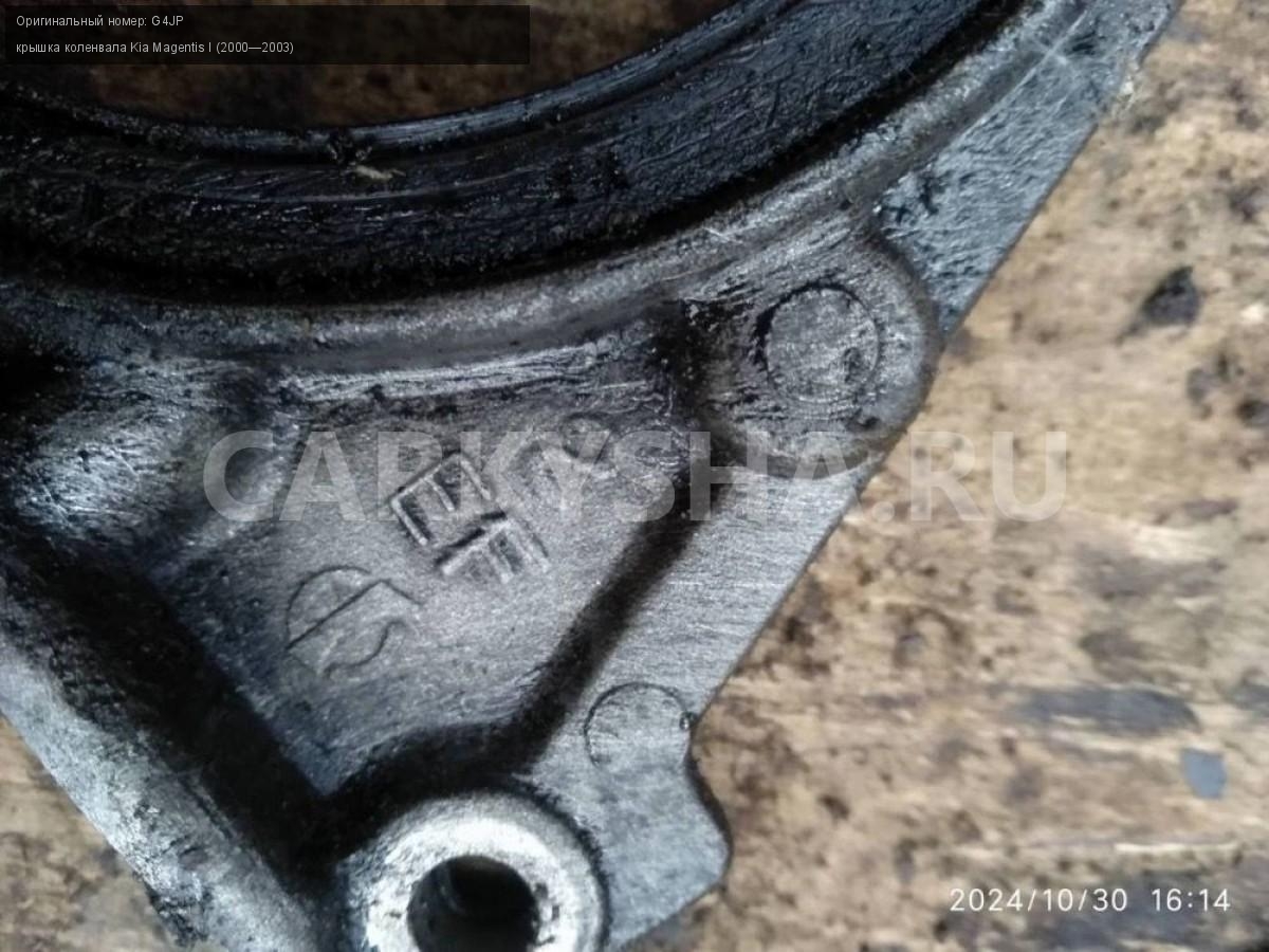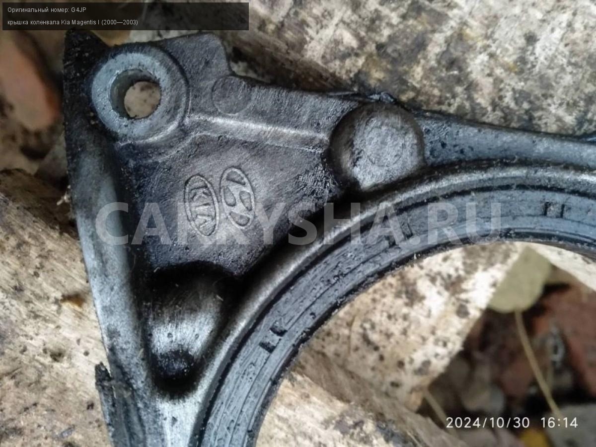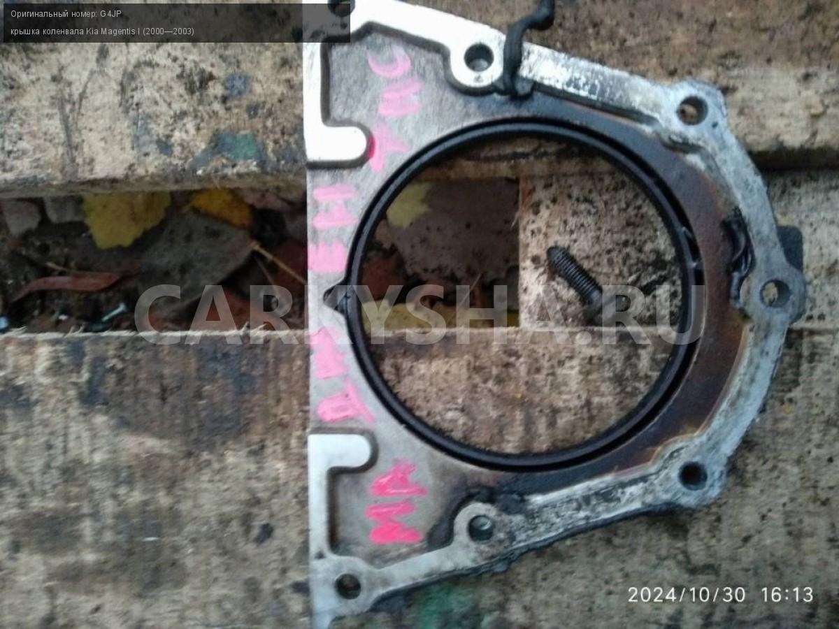Kia Magentis 1, 2.0 G4JP крышка коленвала\nАртикул: 6161\n\nОриг. номер: G4JP\nПроизводитель: Hyundai-KIA\nПримечание:Кия маджентис 1 2.0 G4JP крышка коленвала , б/у. \n\nМарка: Kia\nМодель: Magentis I (2000—2003)\nСовместимости: Kia Magentis I (2000—2003)\nСовместимость: