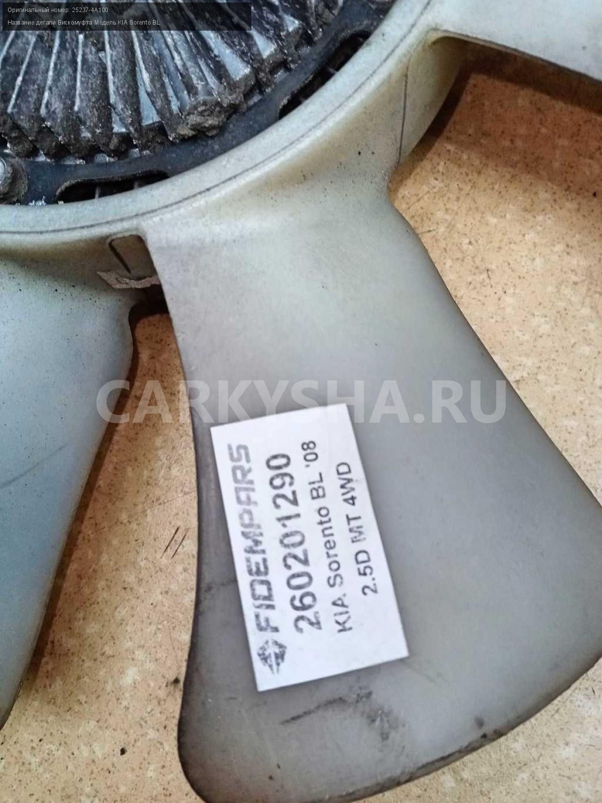 Название детали Вискомуфта на Модель KIA Sorento BL Муфта вентилятора. GMB. С крыльчаткой. В составе: 25261-42920. 25237-4A100 D4CB 2.5 TDi МКПП 5 SPEED MT 4WD 4WD Номер по складу:260201290