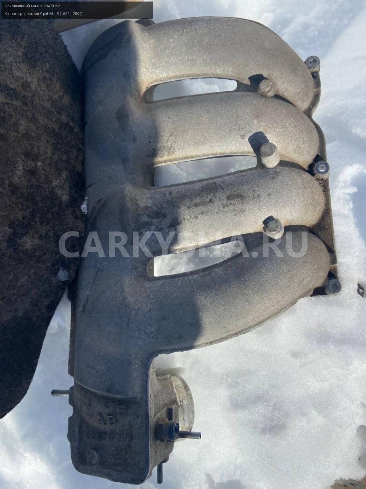 Opel Vita B, 1.4 коллектор впускной.\nАртикул: 4456\n\nОриг. номер: 90470296\nПроизводитель: OPEL\nПримечание:Опель Вита В, 1.4 X14XE, коллектор впускной, бу. \n\nМарка: Opel\nМодель: Vita B (1995—2000)\nГод выпуска: 1998\nКузов тип: Хетчбэк\nДвигатель номер: X14XE\nМодель двигателя: инжектор\nОбъем: 1.4\nТопливо: Бензин\nКоробка: Автомат\nЦвет: Красный\nСовместимости: Opel Vita B (1995—2000) 1.4 AT (90 л.с.)\nСовместимость: