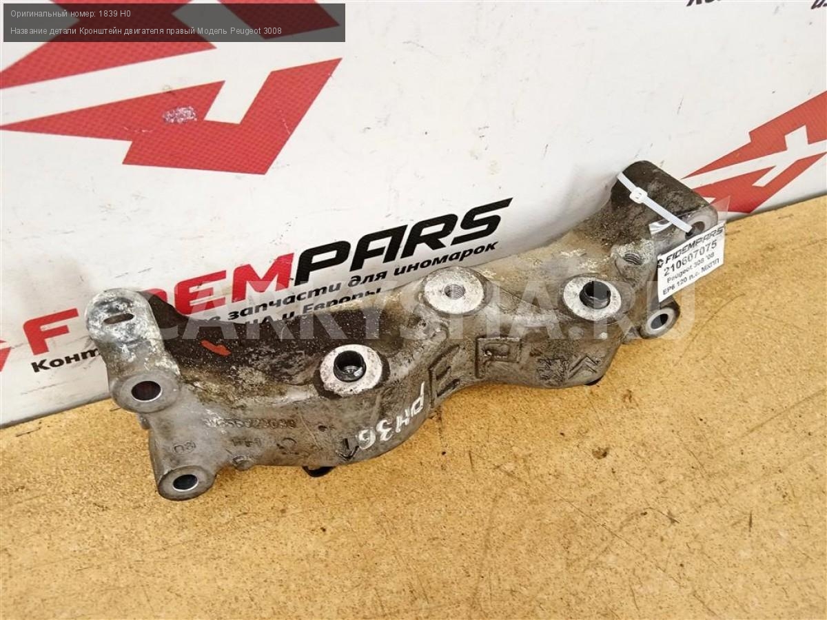 Название детали Кронштейн двигателя правый на Модель Peugeot 3008 Опора. Подушка. 1839 H0 EP6 1.6 120 л.с. МКПП передний Номер по складу:210607075 Подходит также на: Citroen Berlingo B9,Citroen C4 1 рестайлинг,Citroen C4 B7,Peugeot 3008,Peugeot 408,Peugeot Partner II рест. 2012-2015