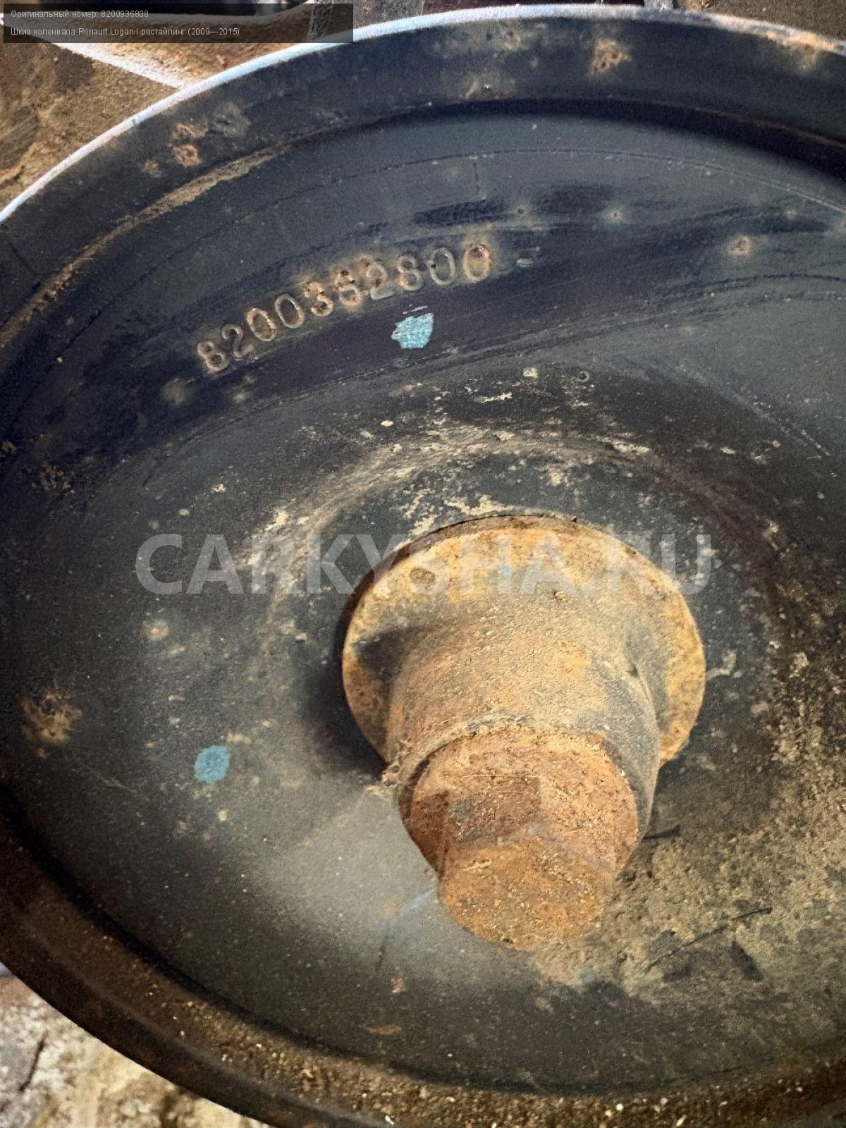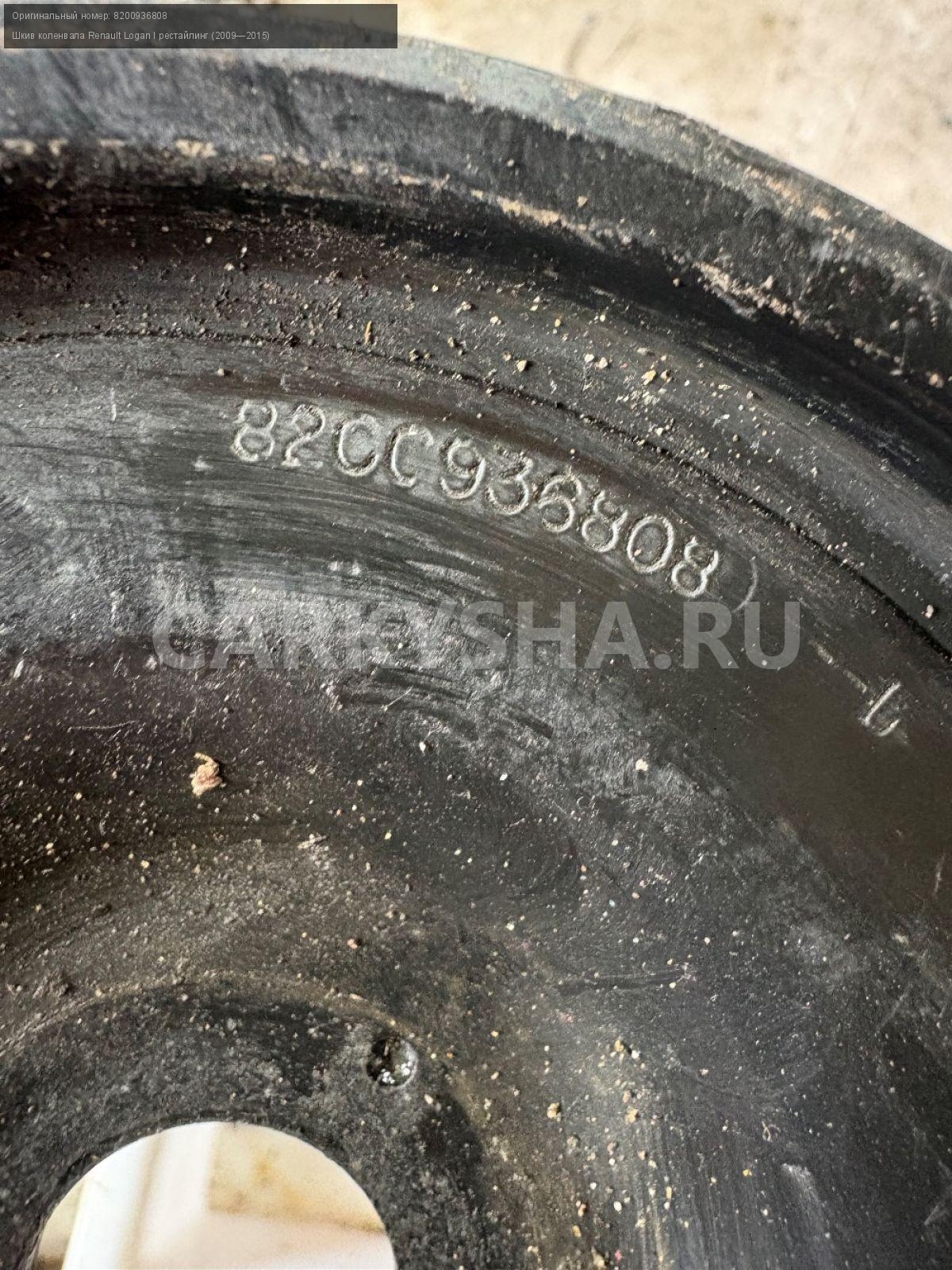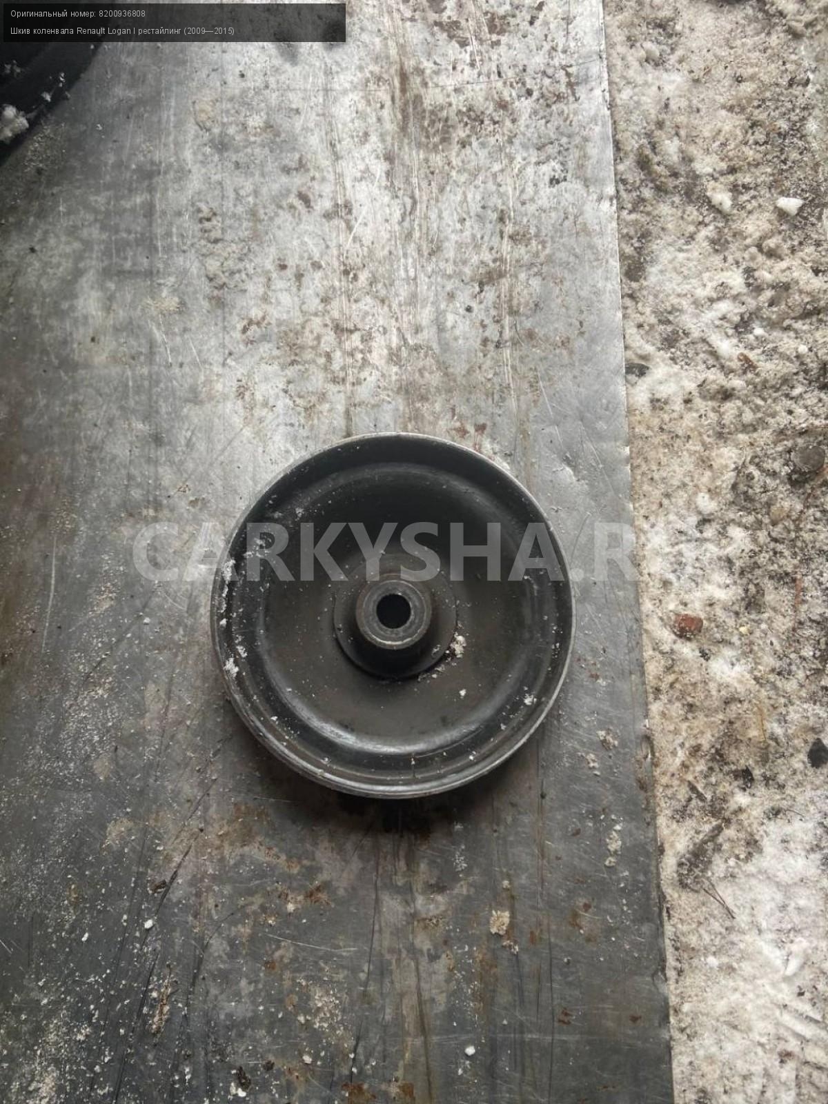 Renault Logan, шкив коленвала.\nАртикул: 4215\n\nОриг. номер: 8200936808\nПроизводитель: RENAULT\nПримечание:Рено Логан, шкив коленвала, б/у. \n\nМарка: Renault\nМодель: Logan I рестайлинг (2009—2015)\nГод выпуска: 2013\nКузов тип: Седан\nДвигатель номер: K7JA 710\nМодель двигателя: инжектор\nОбъем: 1.6\nТопливо: Бензин\nКоробка: Механика\nЦвет: Синий\nСовместимости: Renault Logan I рестайлинг (2009—2015) 1.6 MT (85 л.с.)\nСовместимость: