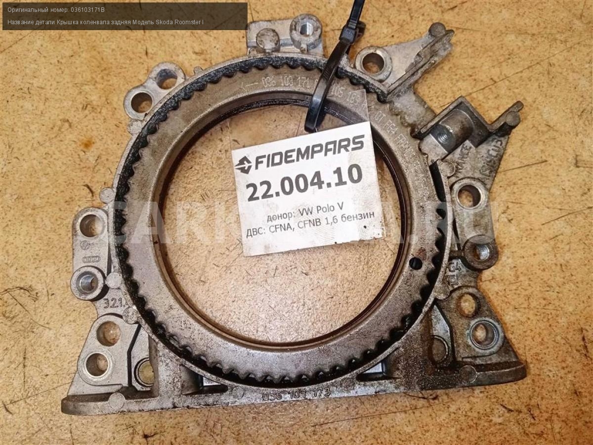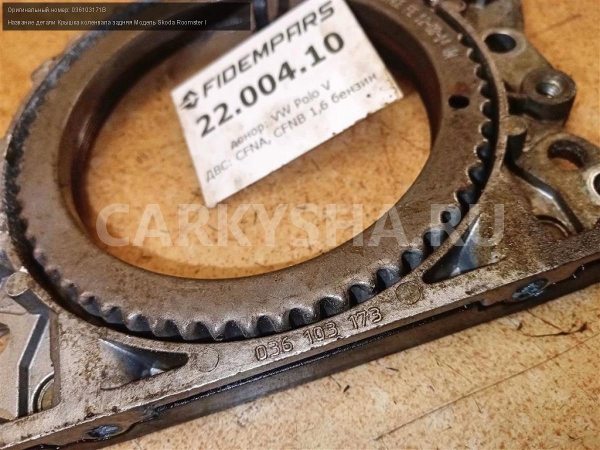 Название детали Крышка коленвала задняя на Модель Skoda Roomster I 038103171S BMA, BKP 2.0 дизель МКПП передний...