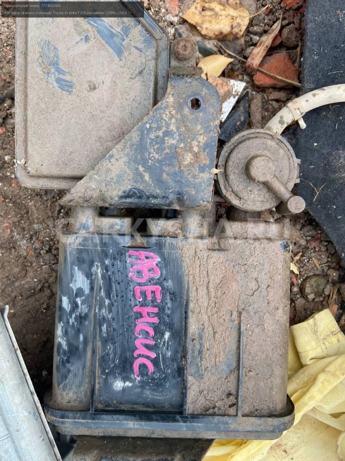 Toyota Avensis T220, Абсорбер топливного бака.\nАртикул: 3602\n\nОриг. номер: 7774002090\nПроизводитель: TOYOTA\nПримечание:Тойота Авенсис Т 220, Абсорбер топливного бака, б/у. \n\nМарка: Toyota\nМодель: Avensis T220 рестайлинг (2000—2003)\nГод выпуска: 2001\nКузов тип: Седан\nДвигатель номер: 1ZZ-FE\nМодель двигателя: инжектор\nОбъем: 1.8\nТопливо: Бензин\nКоробка: Механика\nЦвет: Синий\nСовместимости: Toyota Avensis T220 рестайлинг (2000—2003) 1.8 MT (129 л.с.)\nСовместимость: