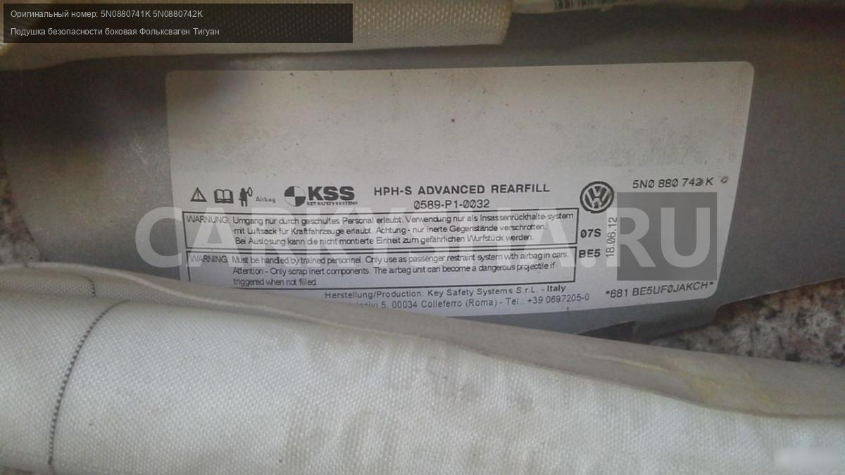 Примечание: Подушка безопасности боковая (шторка) для VW Tiguan 2011-2016 левая правая 5N0880741K 5N0880742K. Цена за шт!!!