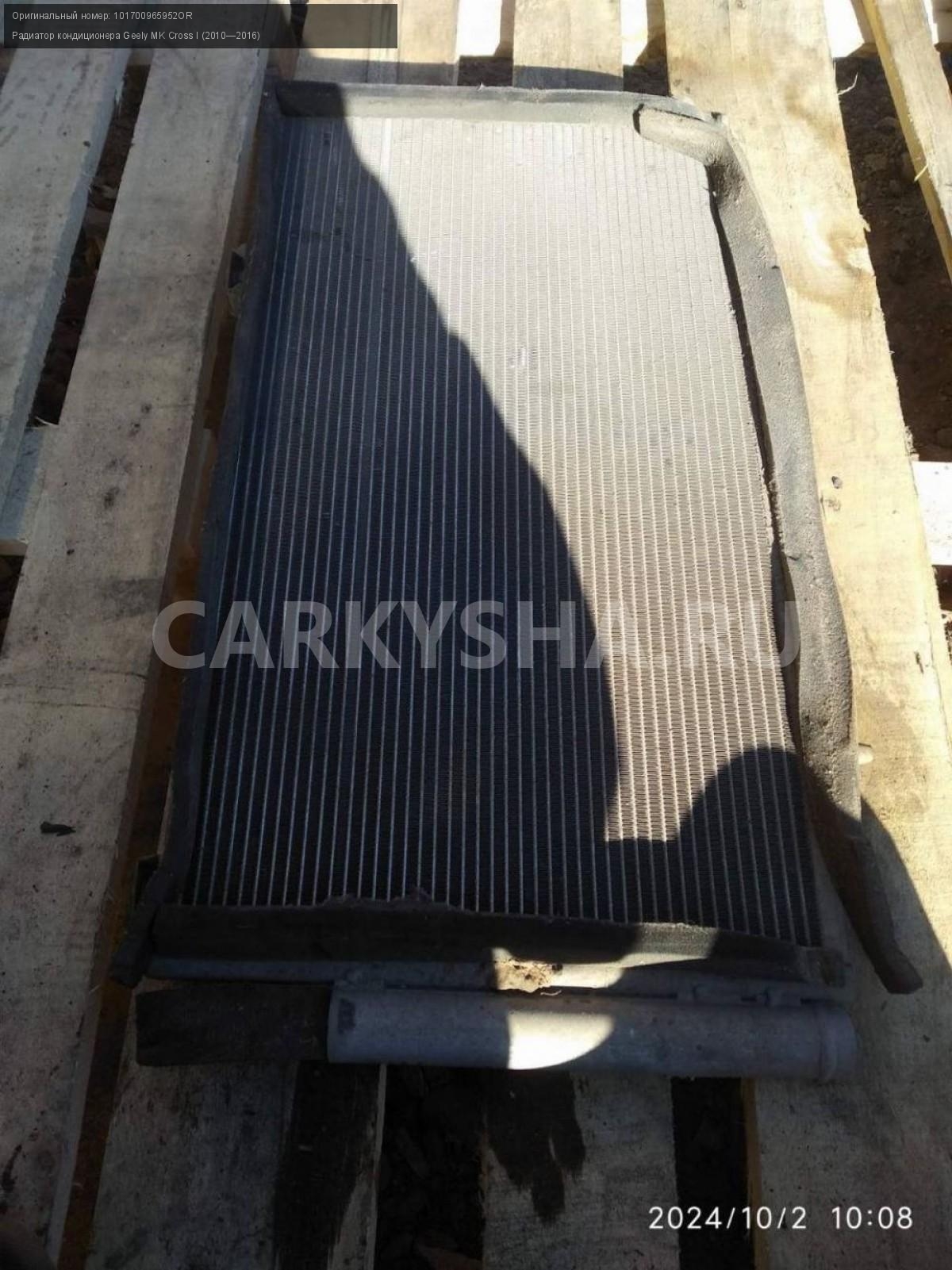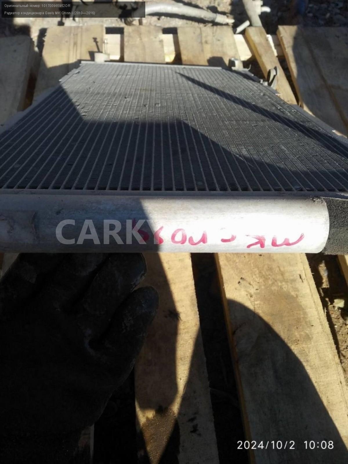 Geely MK Cross, радиатор кондиционера.\nАртикул: 5861\n\nОриг. номер: 101700965952OR\nПроизводитель: GEELY\nПримечание:Джили МК Кросс , радиатор кондиционера, б/у. \n\nМарка: Geely\nМодель: MK Cross I (2010—2016)\nГод выпуска: 2012\nКузов тип: Хетчбэк\nМодель двигателя: инжектор\nОбъем: 1.5\nТопливо: Бензин\nКоробка: Механика\nСовместимости: Geely MK Cross I (2010—2016) 1.5 MT (94 л.с.)\nСовместимость: