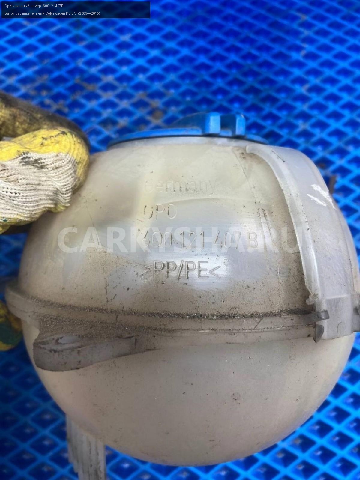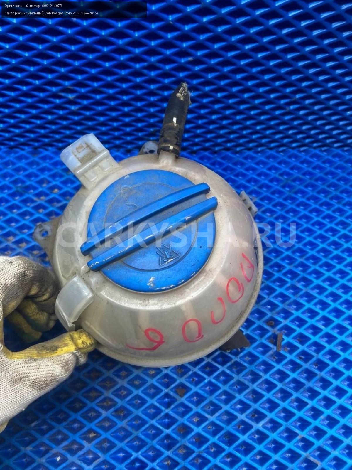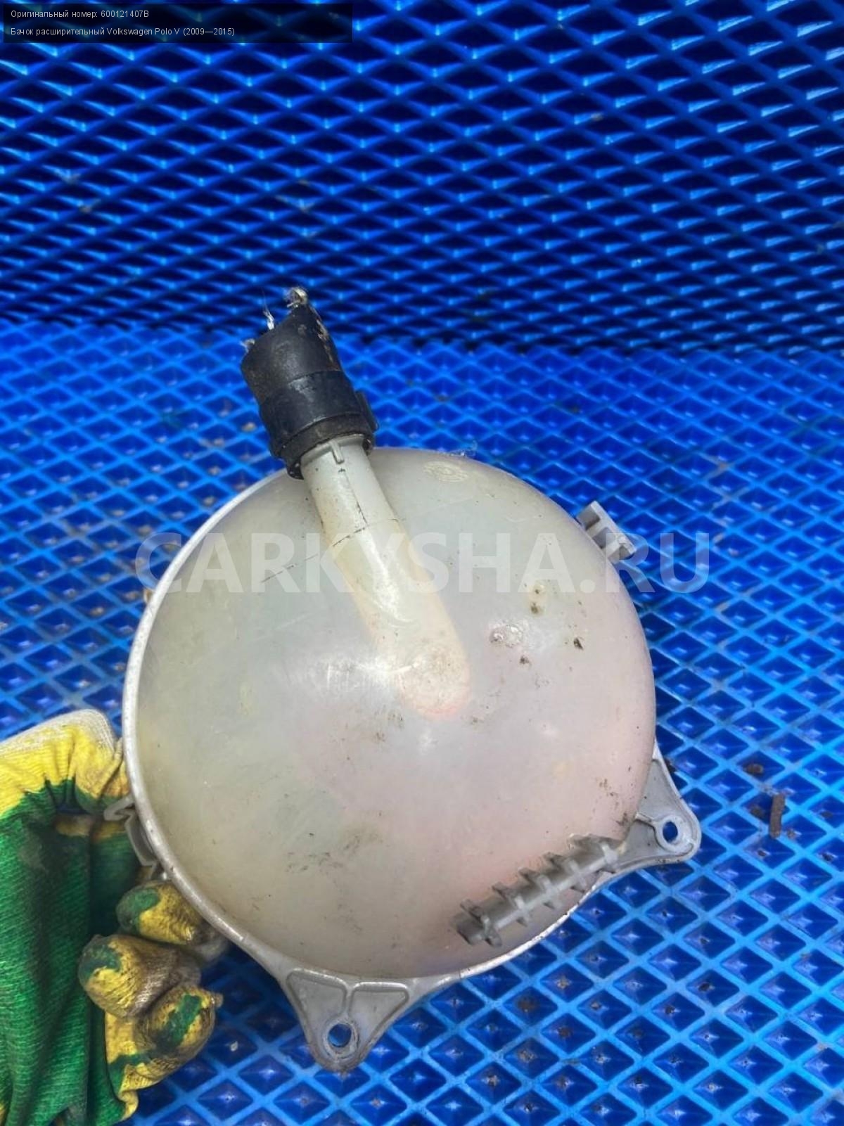 Volkswagen Polo V, бачок расширительный.\nАртикул: 8042\n\nОриг. номер: 600121407B\nПроизводитель: VAG\nПримечание:Фольксваген Поло 5, бачок расширительный, б/у. \n\nМарка: Volkswagen\nМодель: Polo V (2009—2015)\nГод выпуска: 2015\nКузов тип: Седан\nДвигатель номер: CFNB\nОбъем: 1.6\nТопливо: Бензин\nКоробка: Механика\nЦвет: Серебристо-желтый\nСовместимости: Volkswagen Polo V (2009—2015) 1.6 MPI MT (85 л.с.)\nСовместимость: