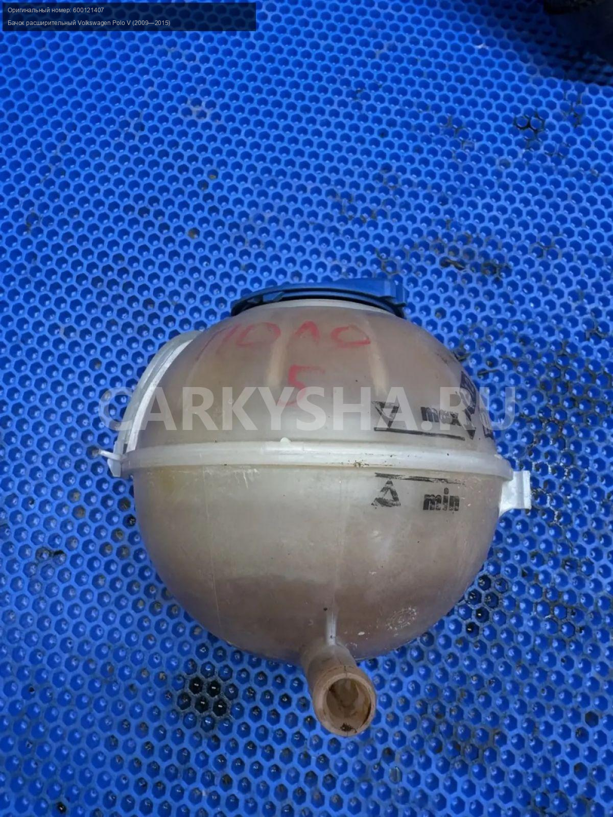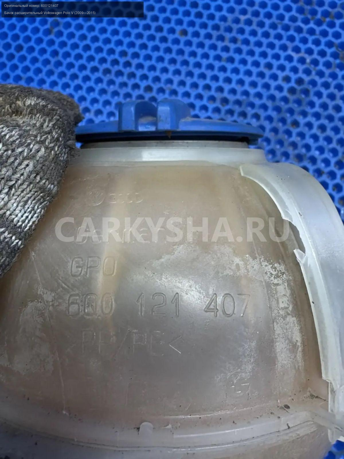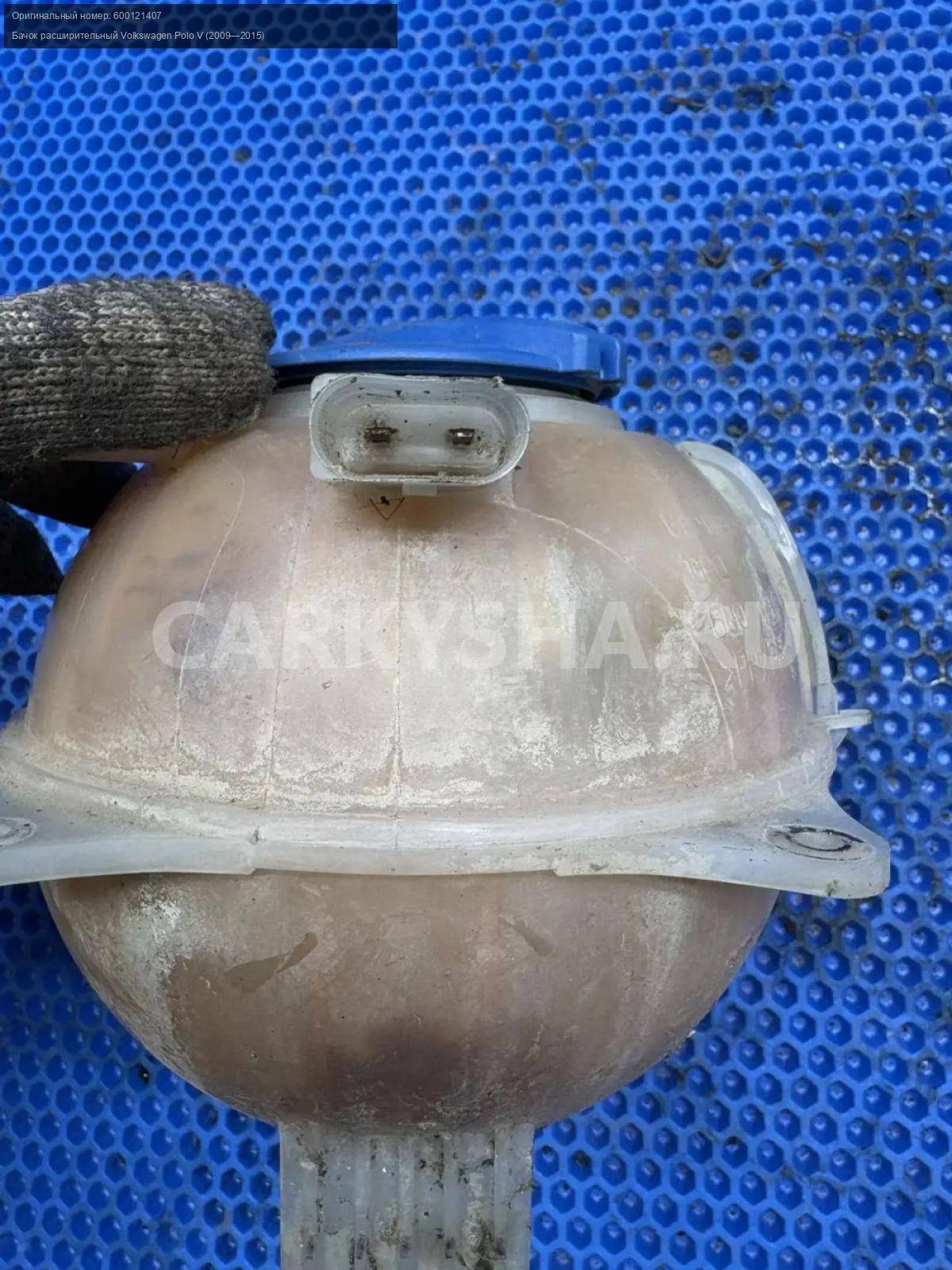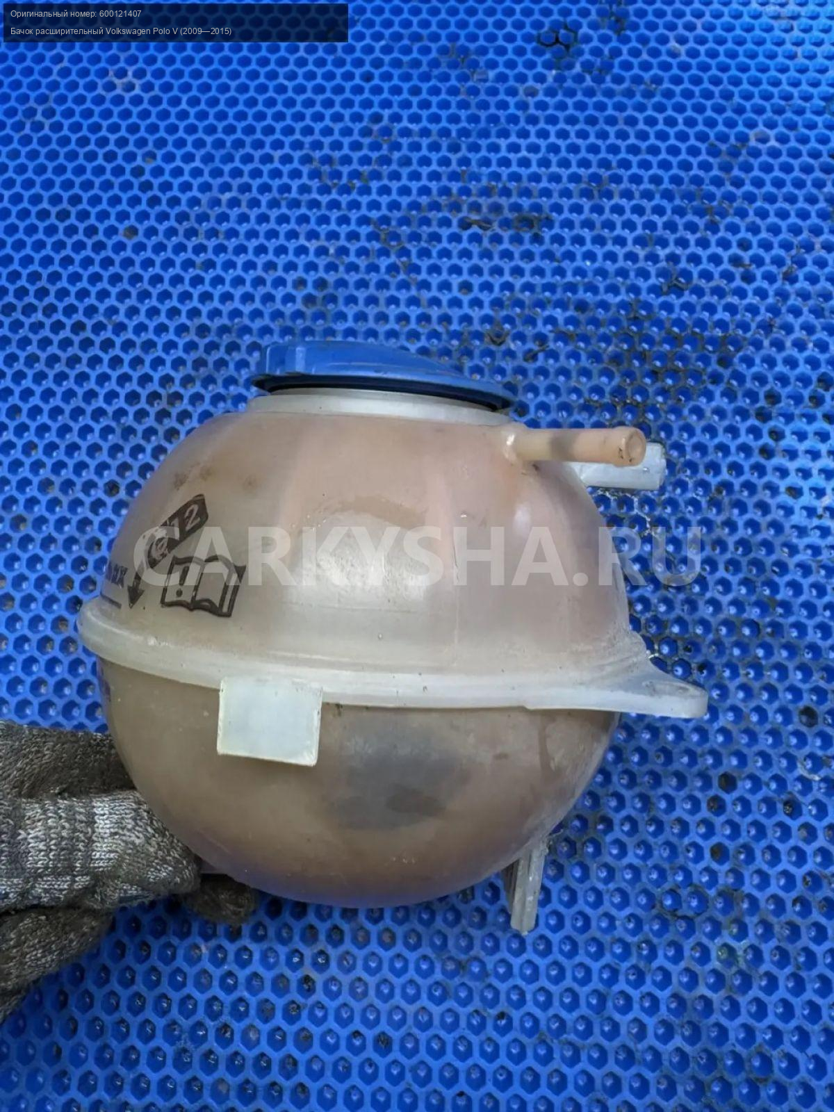 Volkswagen Polo V, бачок расширительный.\nАртикул: 10147\n\nОриг. номер: 600121407\nПроизводитель: VAG\nПримечание:Фольцваген Поло 5, бачок расширительный, б/у. \n\nМарка: Volkswagen\nМодель: Polo V (2009—2015)\nГод выпуска: 2013\nКузов тип: Седан\nДвигатель номер: CFNA\nМодель двигателя: инжектор\nОбъем: 1.6\nТопливо: Бензин\nКоробка: Механика\nЦвет: Белый ( 0Q0Q)\nСовместимости: Volkswagen Polo V (2009—2015) 1.6 MPI MT (105 л.с.)\nСовместимость:
