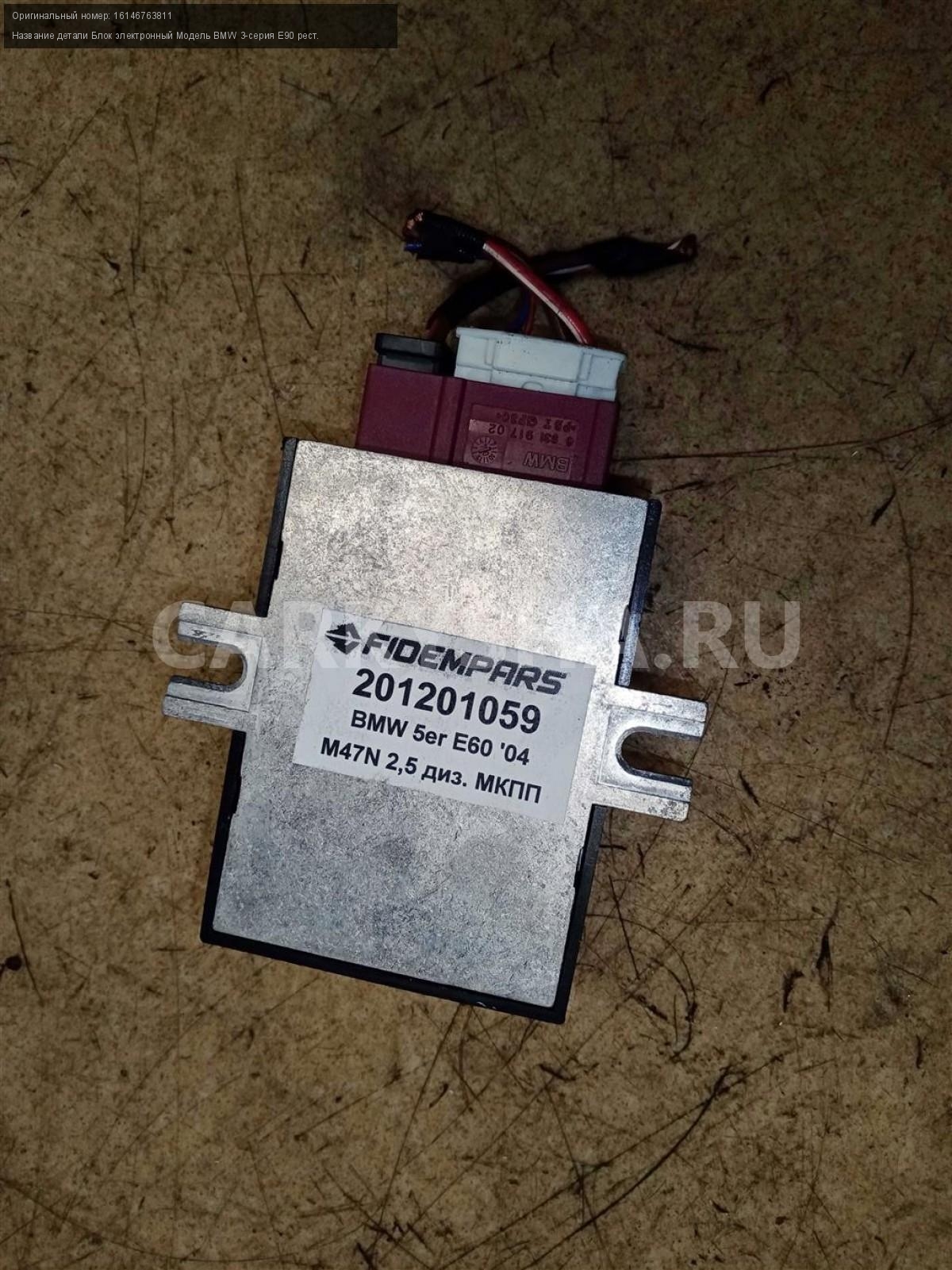 Название детали Блок электронный на Модель BMW 3-серия E90 рест. Блок управления бензонасосом. 16146763811 M57D25 525d МКПП задний Номер по складу:201201059 Подходит также на: BMW 3-серия E90,BMW 3-серия E90 рест.,BMW X1 E84