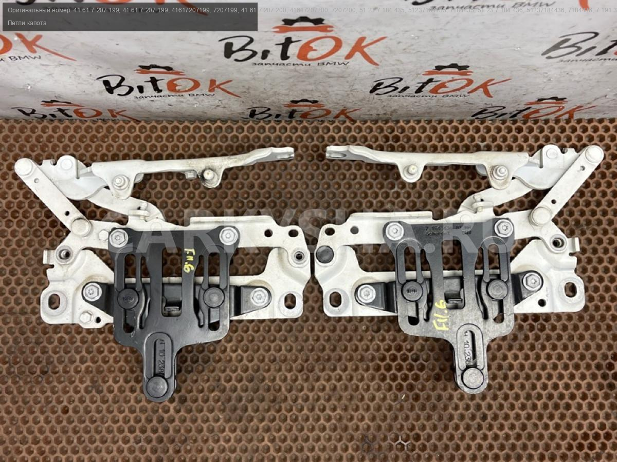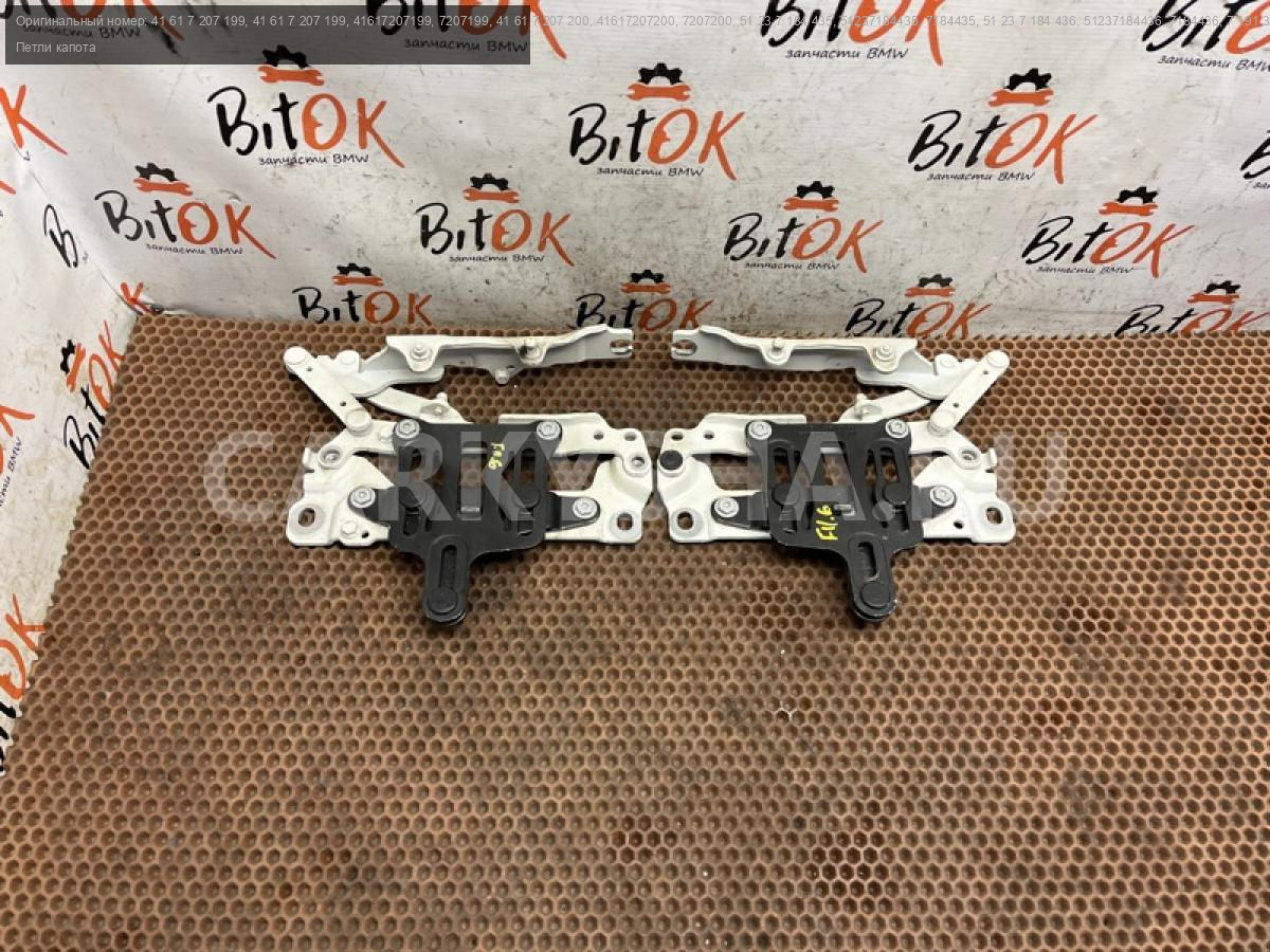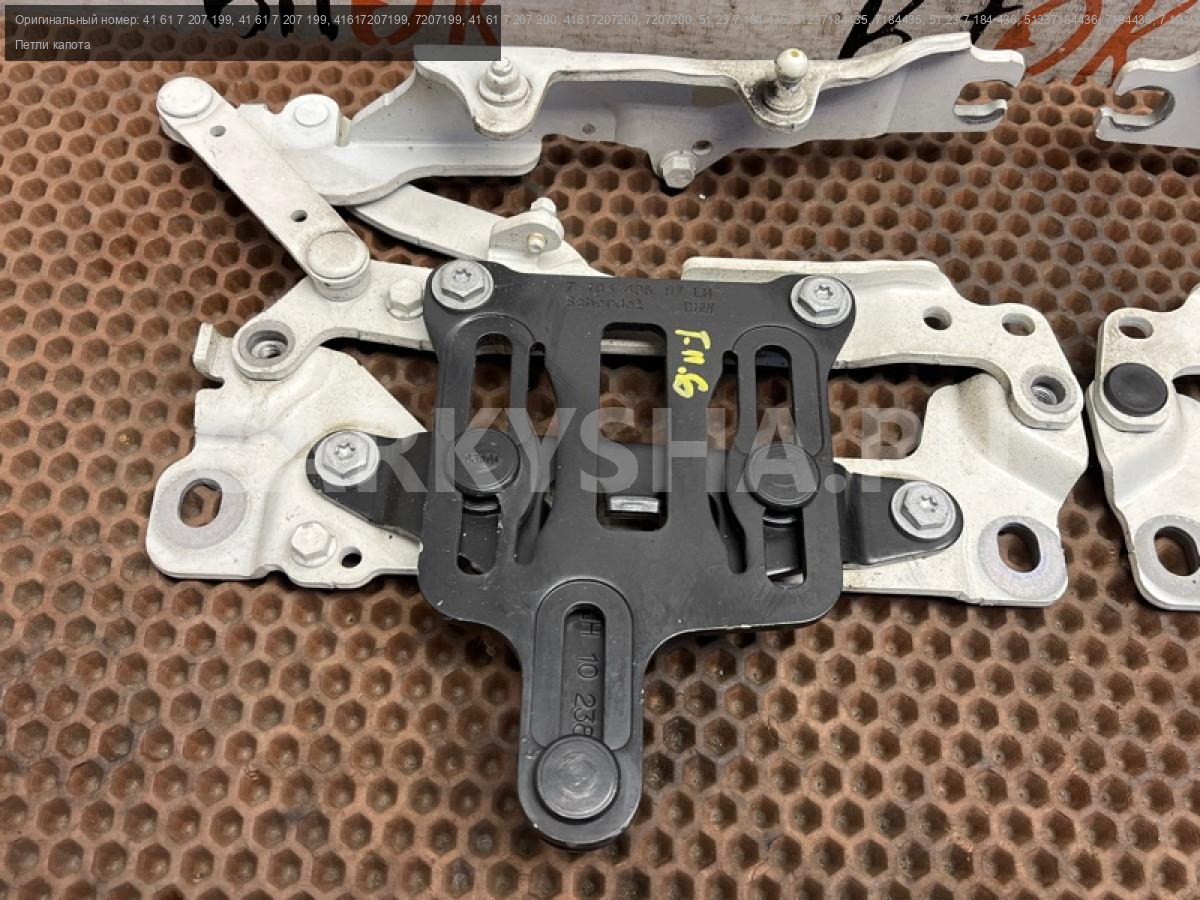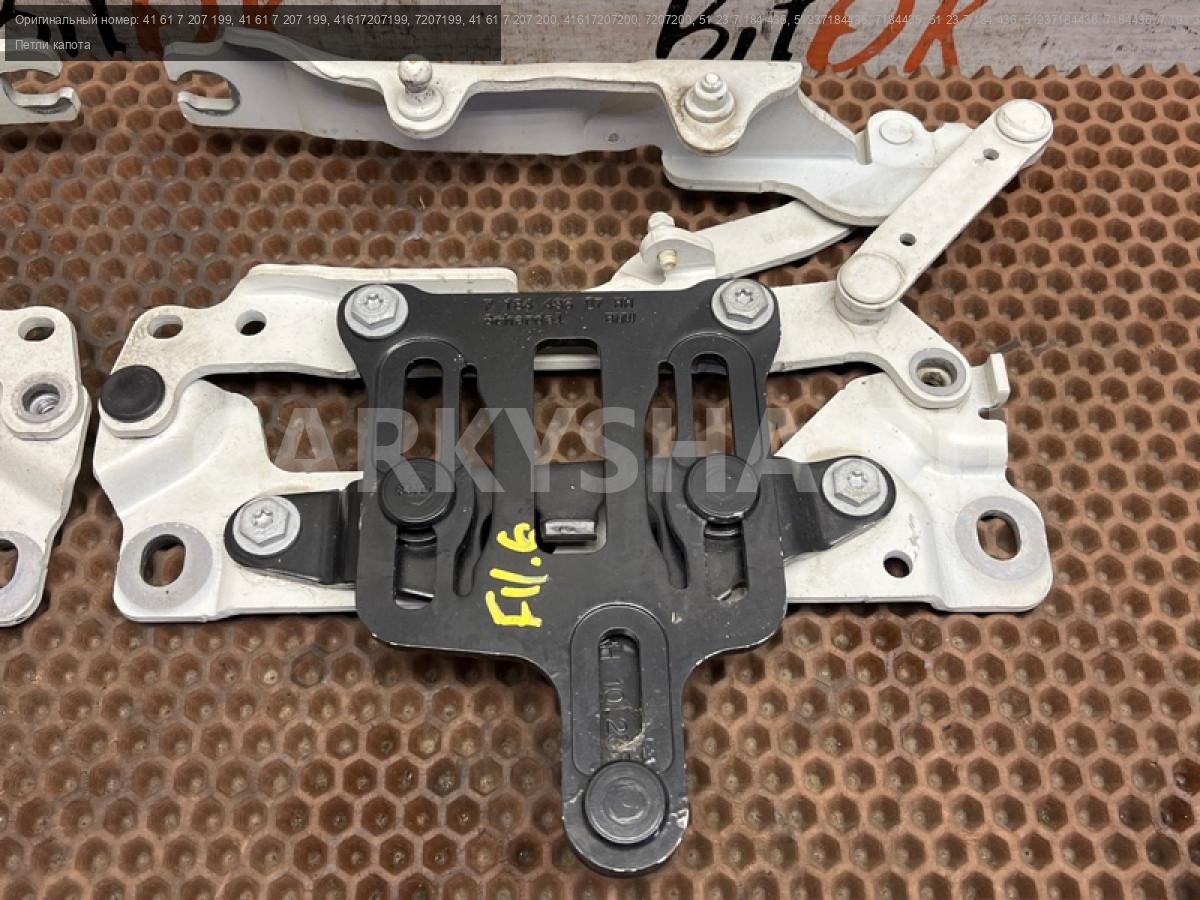 Петли капота белого цвета в сборе с кулисами БМВ ф10 ф11 ф18.\nКомплект правая и левая, цена за пару.\nОкончание производства 03.2011 г.\n\nЗапчасть снята с японского распила BMW. \nОригинал. \nБез пробега по РФ.