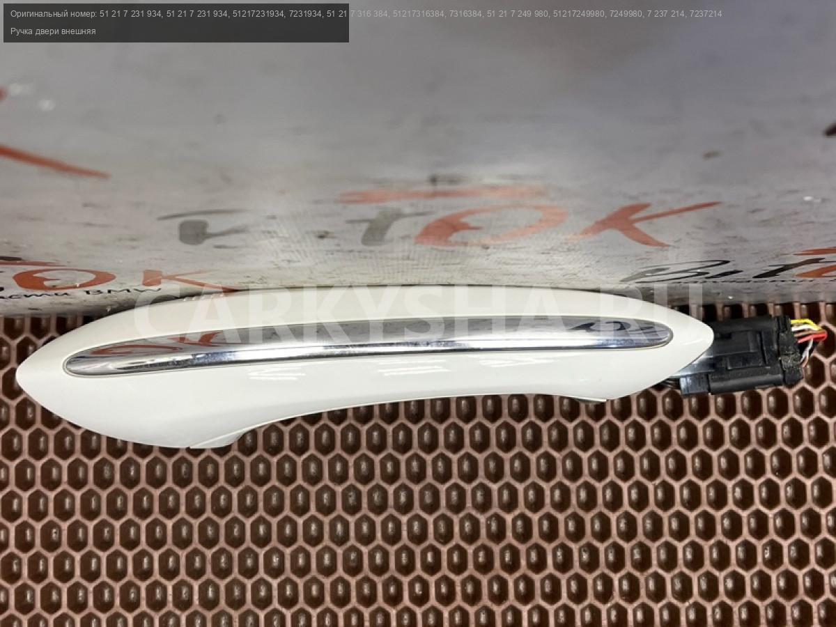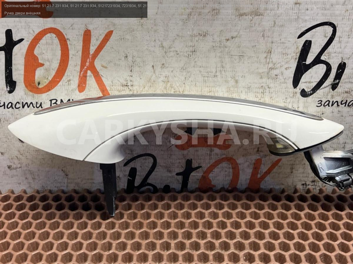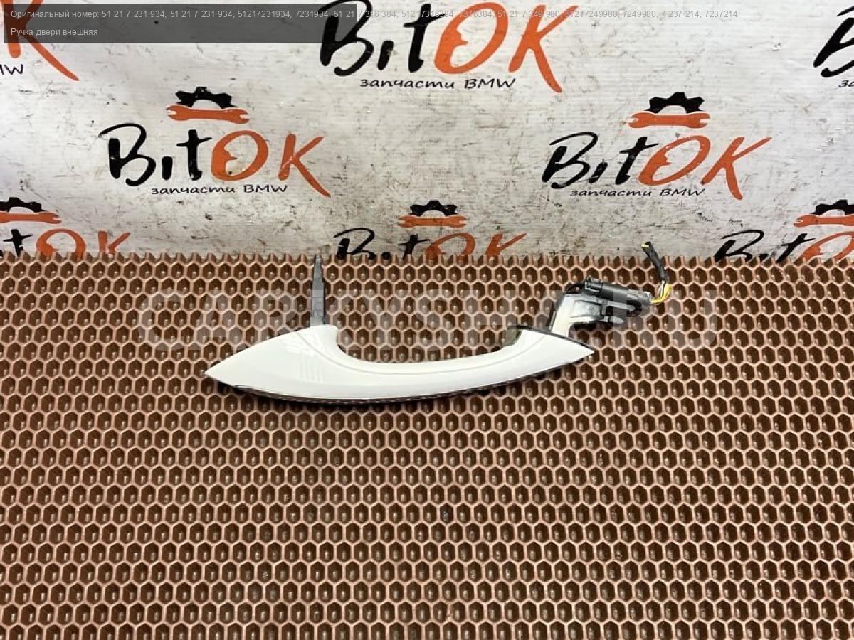 Ручка дверная наружная правая белая с комфортным доступом и подсветкой БМВ ф07 ф10 ф11 ф18 ф06 ф12 ф13 ф01 ф02 ф03 ф04.\nПодходит на переднюю и заднюю двери по правой стороне.\nОпция комфортный доступ (S322A).\nСопровождающее освещение салона (S4URA).\nЦвет а300 Alpinwaiss a300 (альпинвейс).\n\nСледы эксплуатации отражены на фото.\nЗапчасть снята с японского распила BMW. \nОригинал. \nБез пробега по РФ.