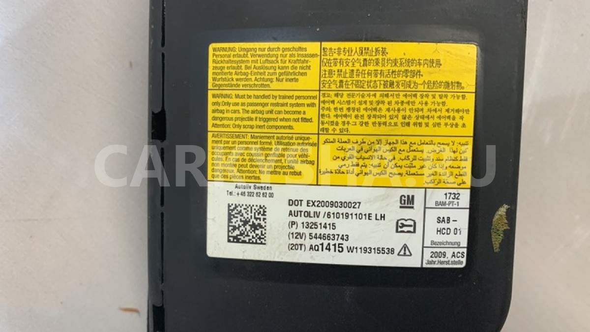 Подушка безопасности в сиденье Chevrolet Cruze J300 F16D4 1.6 2010 левая (контракт)