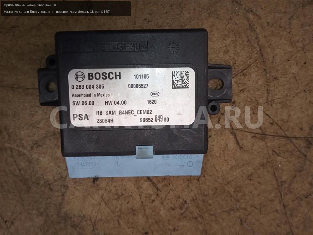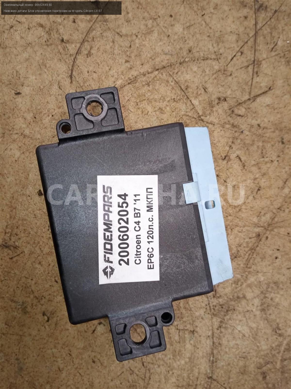 Название детали Блок управления парктроником на Модель Citroen C4 B7 9665264980. ЭБУ. Управление датчиками парковки. 96652649 80 EP6C 1.6 120 л.с. МКПП передний Номер по складу:200602054