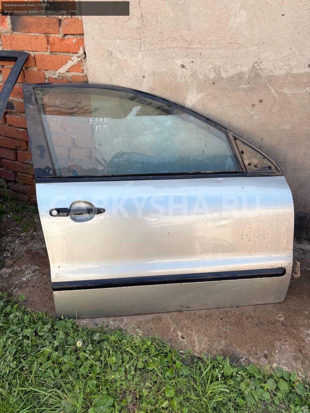 FIAT Brava, дверь передняя правая в сборе\nАртикул: 8423\n\nОриг. номер: 7769065\nПроизводитель: Fiat\nПримечание:Фиат Брава, дверь передняя правая в сборе как на фото, б/у. \n\nМарка: FIAT\nМодель: Brava I (1995—2001)\nПраво/Лево: Право\nПеред/Зад: Перед\nСовместимости: FIAT Brava I (1995—2001)\nСовместимость: