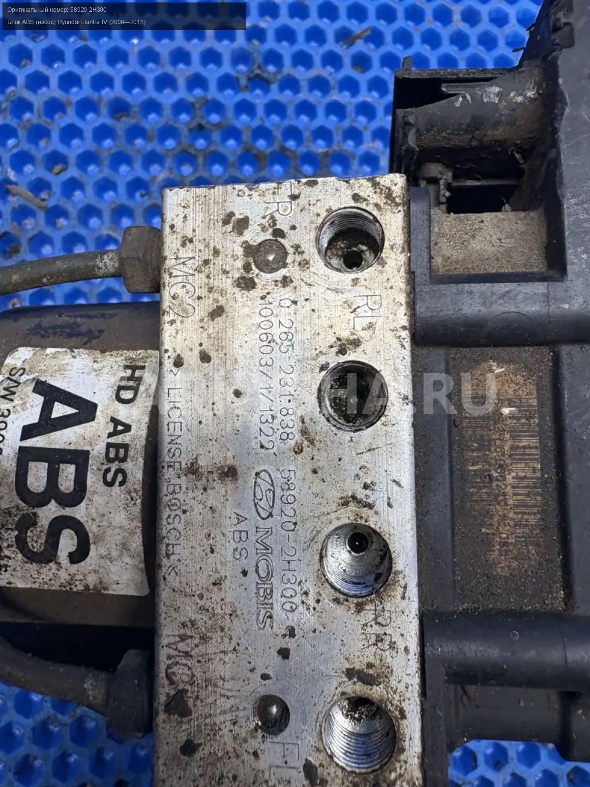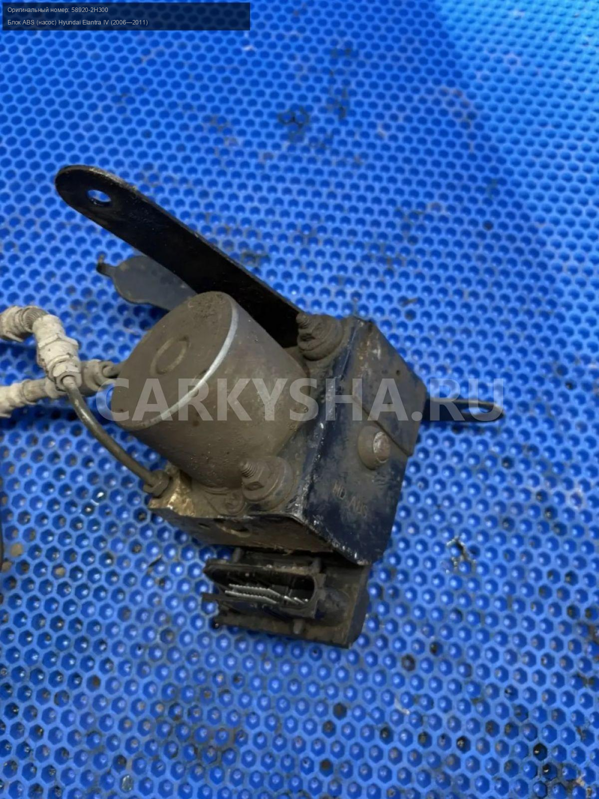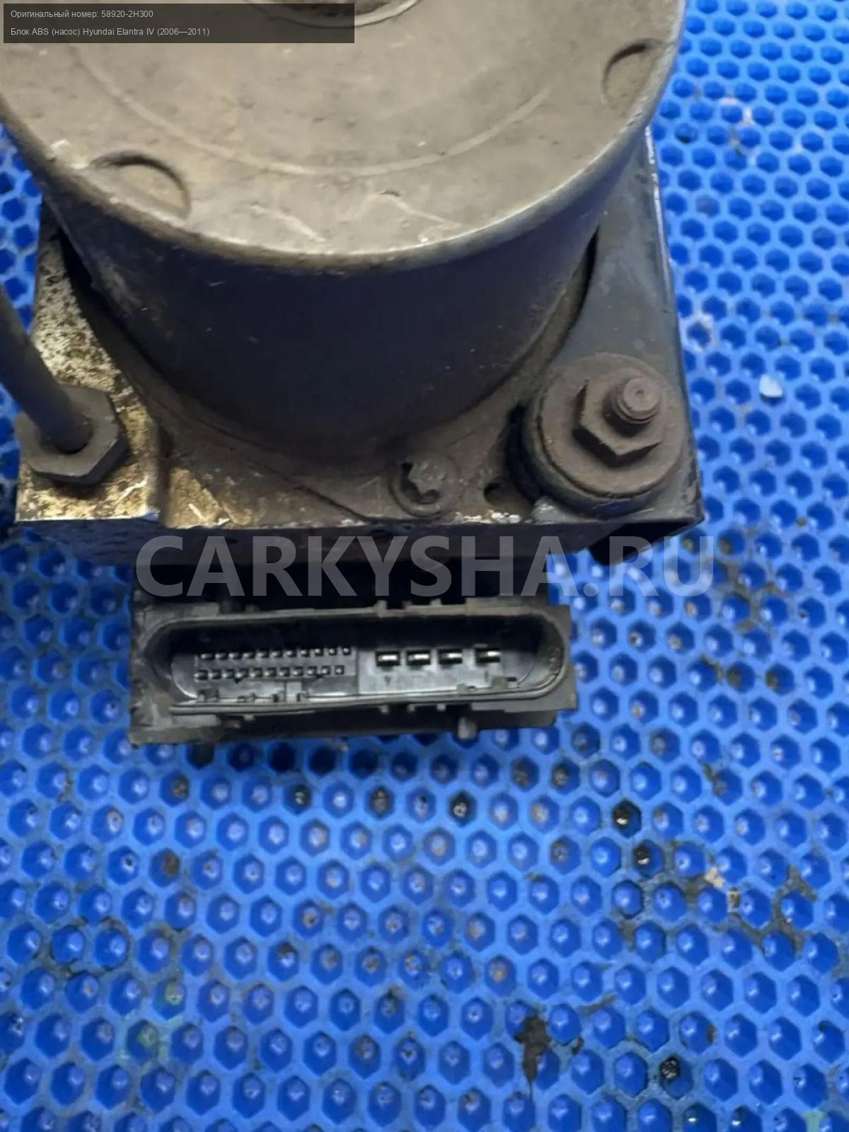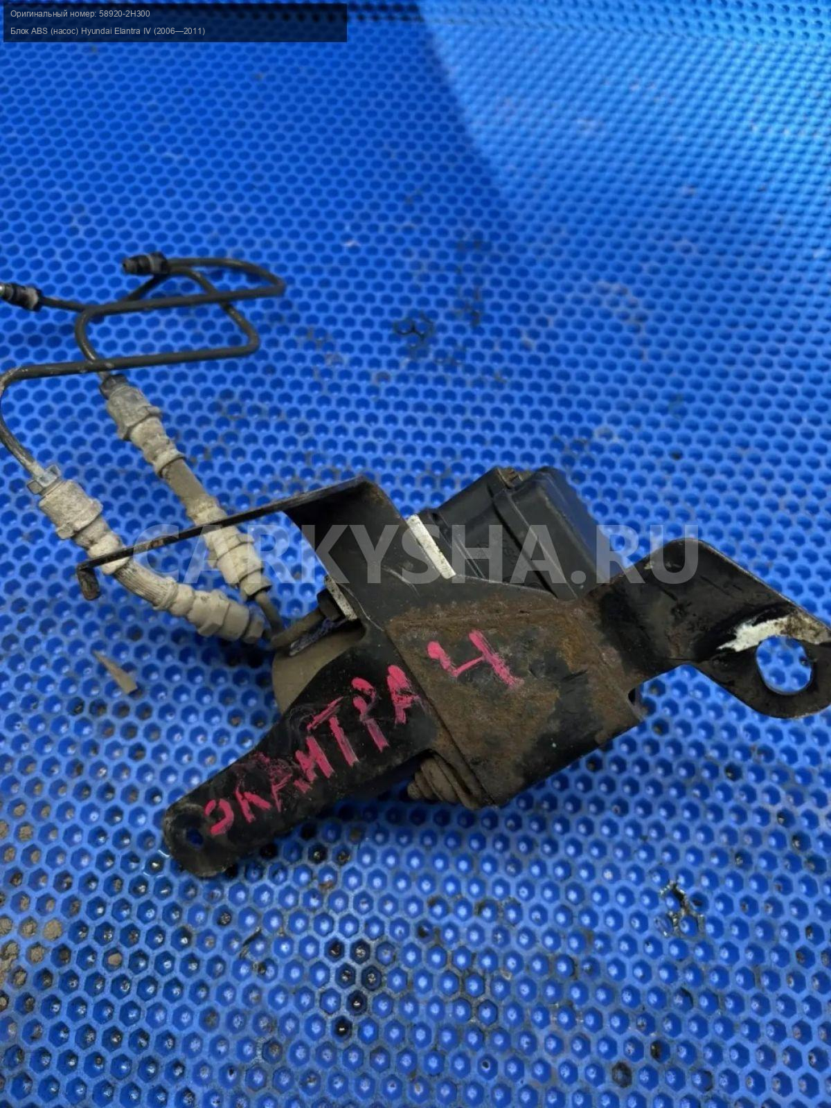 Hyundai Elantra IV HD, блок ABS.\nАртикул: 10172\n\nОриг. номер: 58920-2H300\nПроизводитель: Hyundai-KIA\nПримечание:Хендай Элантра 4 HD , блок АБС , сломан пластик разьема , б/у. \n\nМарка: Hyundai\nМодель: Elantra IV (2006—2011)\nГод выпуска: 2010\nКузов тип: Седан\nДвигатель номер: G4FC\nМодель двигателя: инжектор\nОбъем: 1.6\nТопливо: Бензин\nКоробка: Механика\nЦвет: черный\nСовместимости: Hyundai Elantra IV (2006—2011) 1.6 MT (122 л.с.)\nСовместимость: