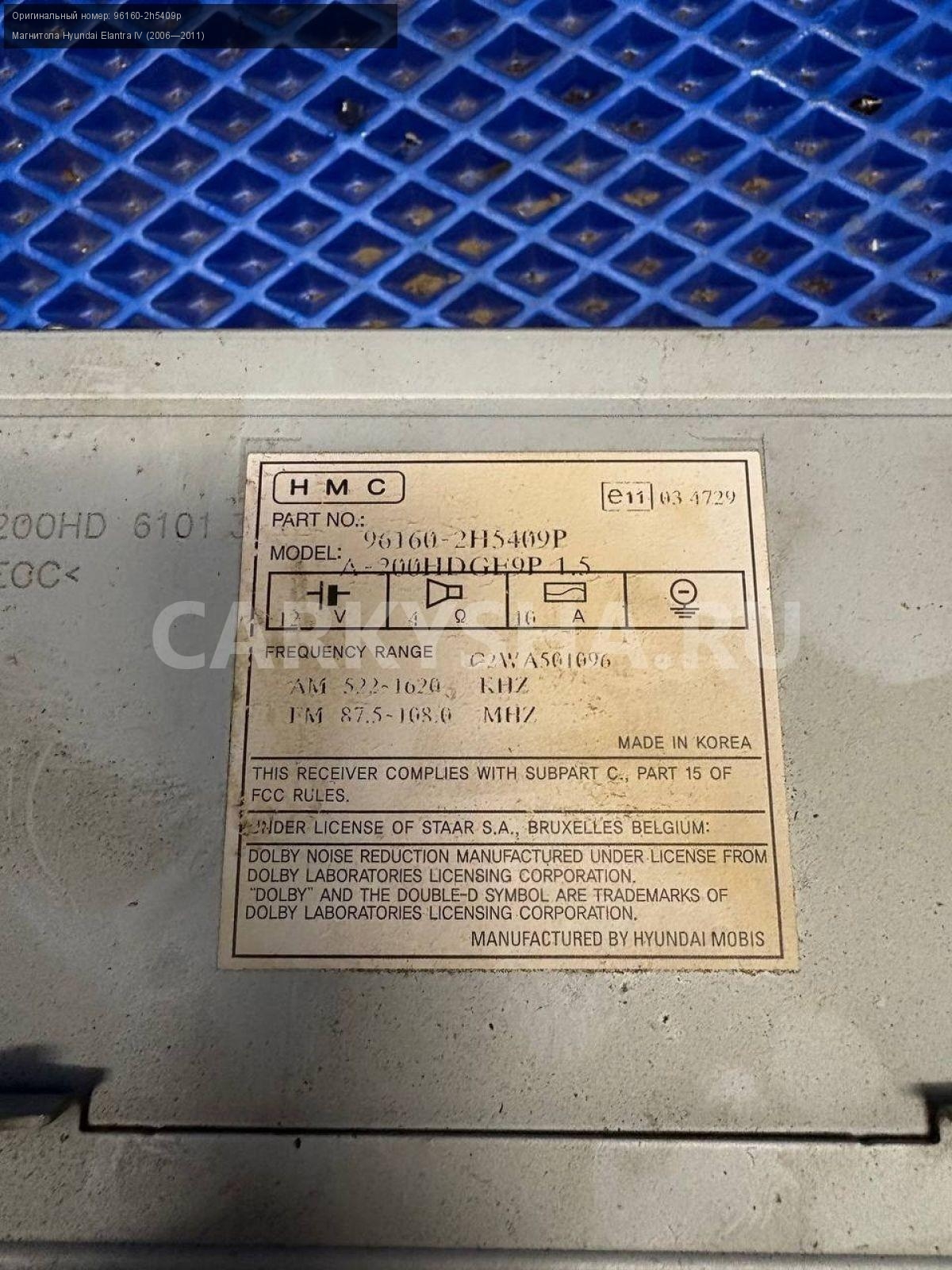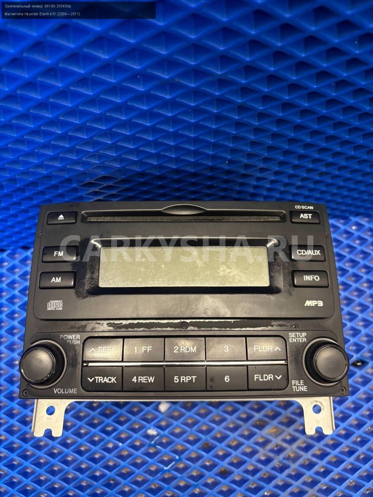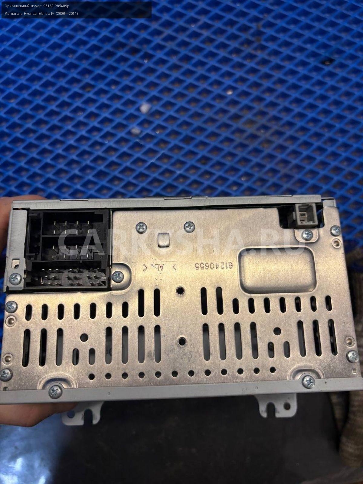 Hyundai Elantra IV HD, магнитола штатная\nАртикул: 9848\n\nОриг. номер: 96160-2h5409p\nПроизводитель: Hyundai-KIA\nПримечание:Хендай Элантра 4 HD, магнитола штатная, б/у. \n\nМарка: Hyundai\nМодель: Elantra IV (2006—2011)\nГод выпуска: 2010\nКузов тип: Седан\nДвигатель номер: G4FC\nМодель двигателя: инжектор\nОбъем: 1.6\nТопливо: Бензин\nКоробка: Механика\nЦвет: черный\nСовместимости: Hyundai Elantra IV (2006—2011) 1.6 MT (122 л.с.)\nСовместимость: