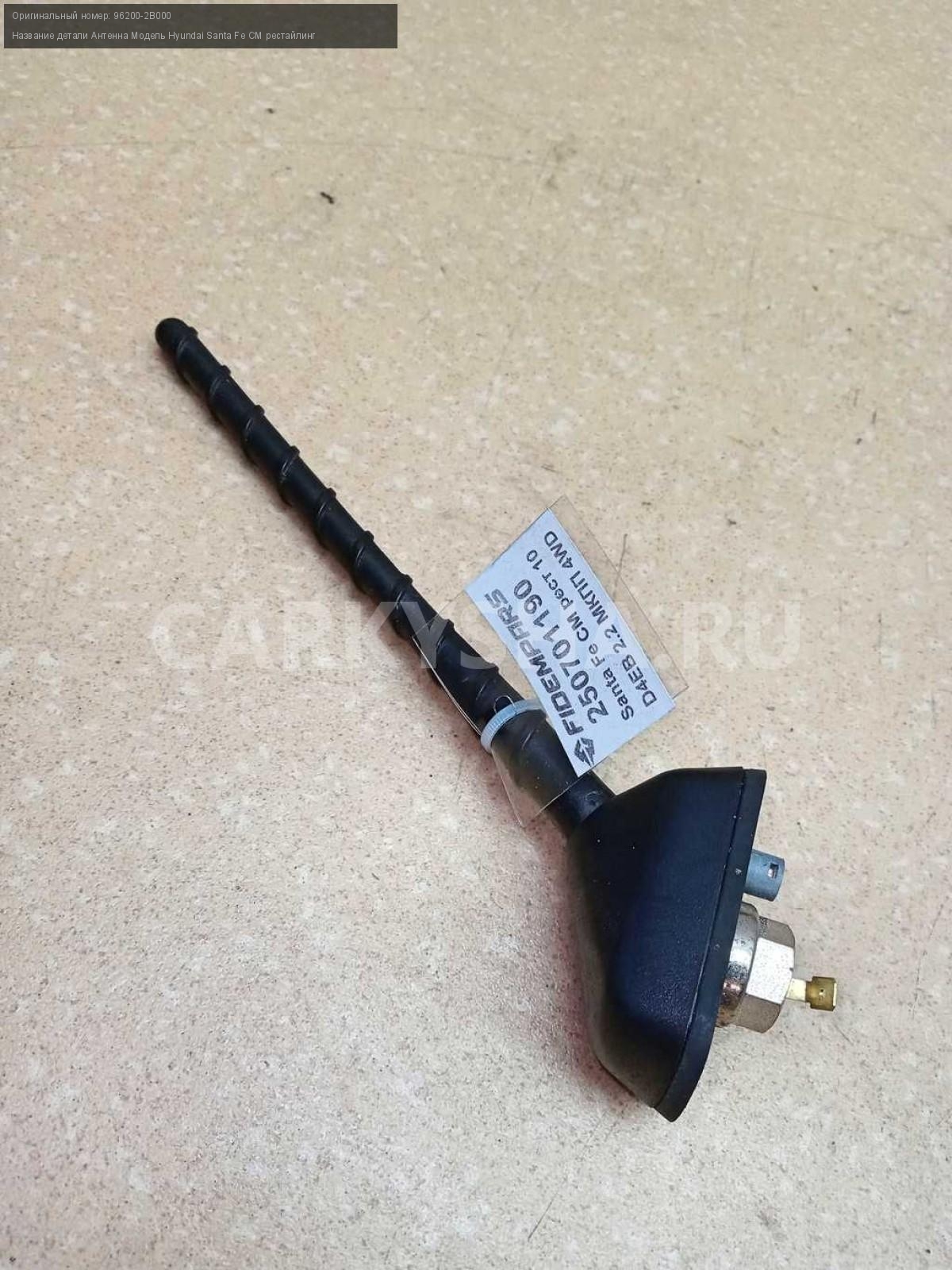 Название детали Антенна на Модель Hyundai Santa Fe CM рестайлинг В составе: 96250-2B100 96200-2B000 D4HB 2.2 дизель МКПП - 6 SPEED 4WD 4WD Номер по складу:250701190
