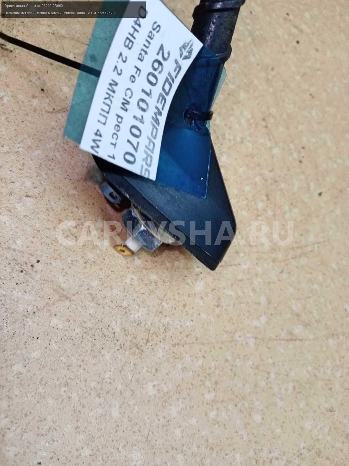 Название детали Антенна на Модель Hyundai Santa Fe CM рестайлинг В составе: 96250-2B100. 96200-2B000 D4HB 2,2 дизель МКПП - 6 SPEED 4WD 4WD Номер по складу:260101070