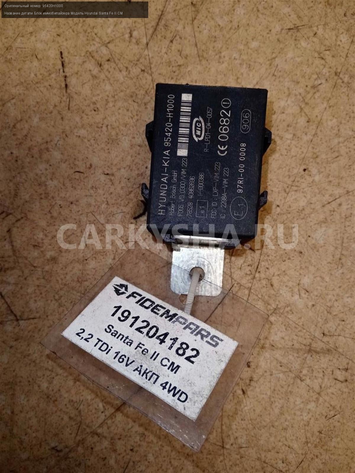 Название детали Блок иммобилайзера на Модель Hyundai Santa Fe CM Противоугонная система. ЭБУ. 95420H1000 D4EB 2.2 TDi 16V АКПП - 5 SPEED 4WD 4WD Номер по складу:191204182x Подходит также на: Hyundai H-1 II,Nissan X-Trail T30