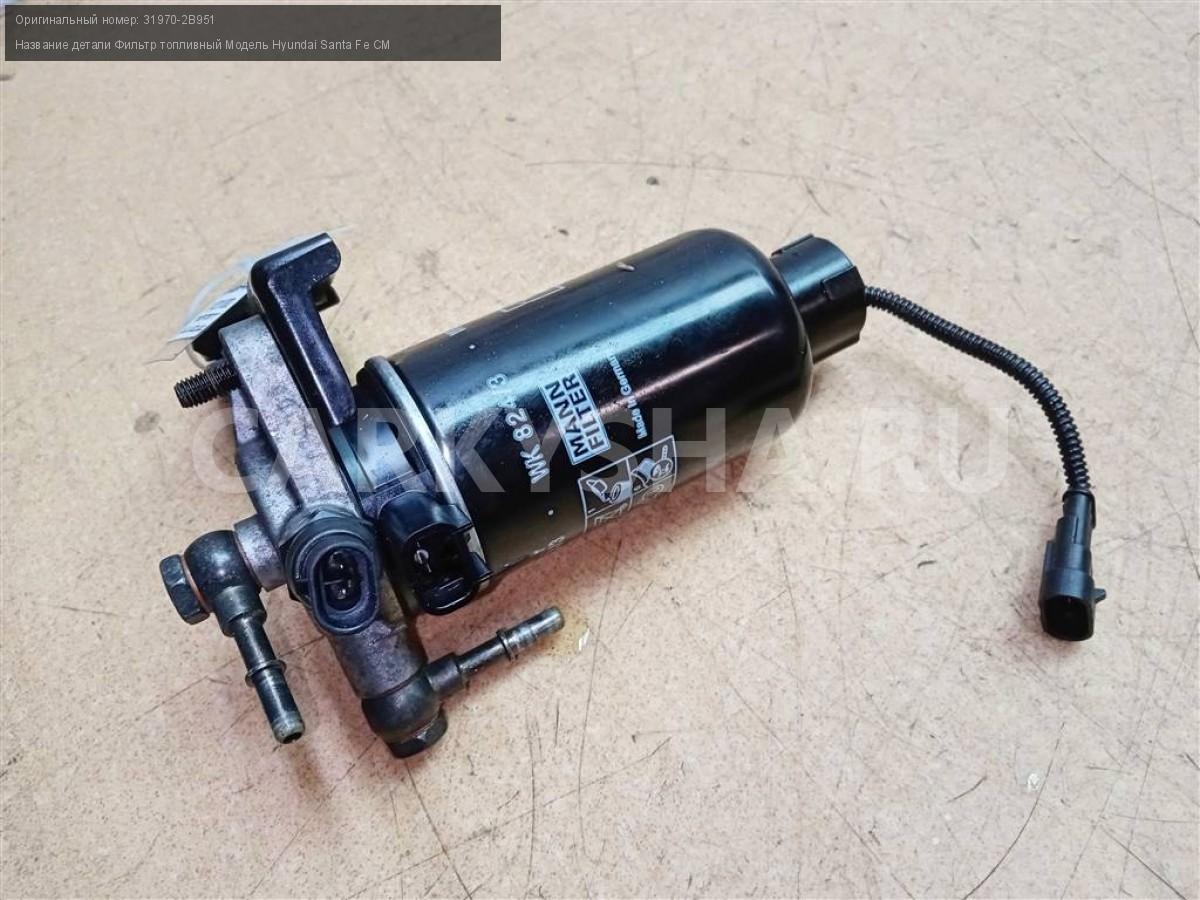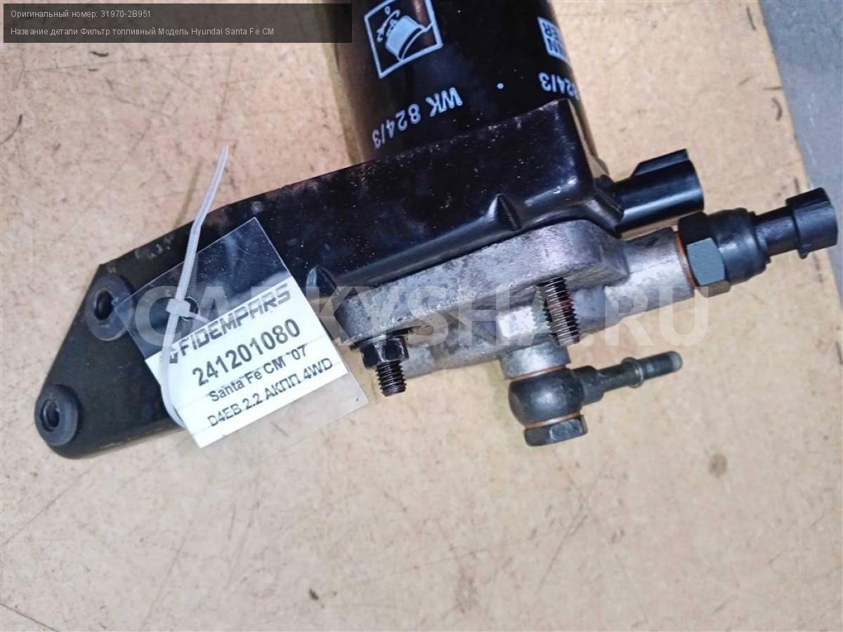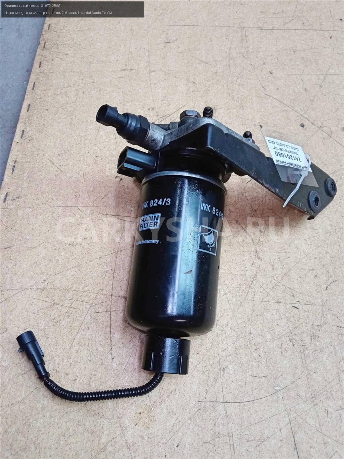 Название детали Фильтр топливный на Модель Hyundai Santa Fe CM MANN FILTER WK824/3. В составе: фильтр 31922-2B900, обогреватель 31923-17500 31970-2B951 D4EB 2.2 дизель АКПП - 5 SPEED 4WD 4WD Номер по складу:241201080 Подходит также на: Hyundai Santa Fe CM