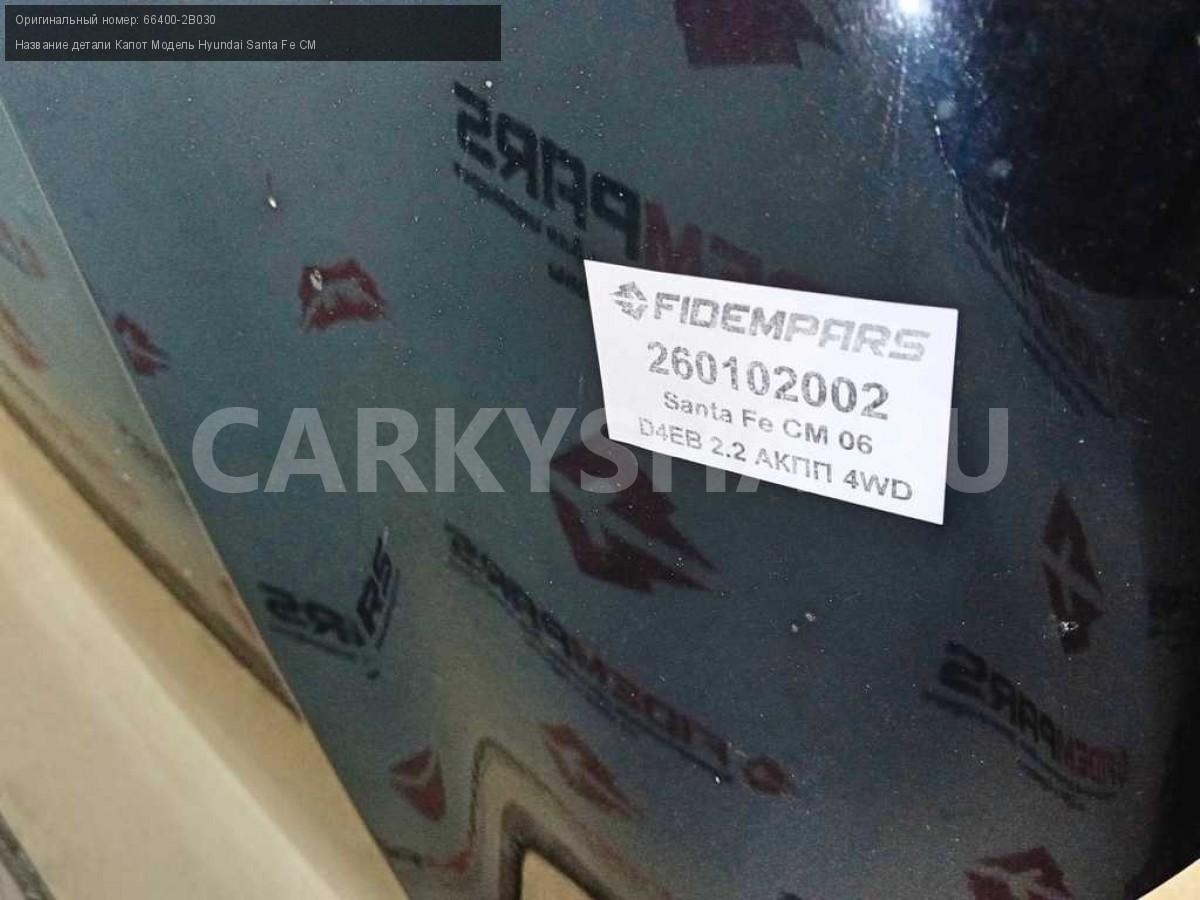 Название детали Капот на Модель Hyundai Santa Fe CM Код краски черный EB. Есть сколы и дефекты лкп. Цена за голый металл 66400-2B030 D4EB 2.2 дизель АКПП - 5 SPEED 4WD 4WD Номер по складу:260102002