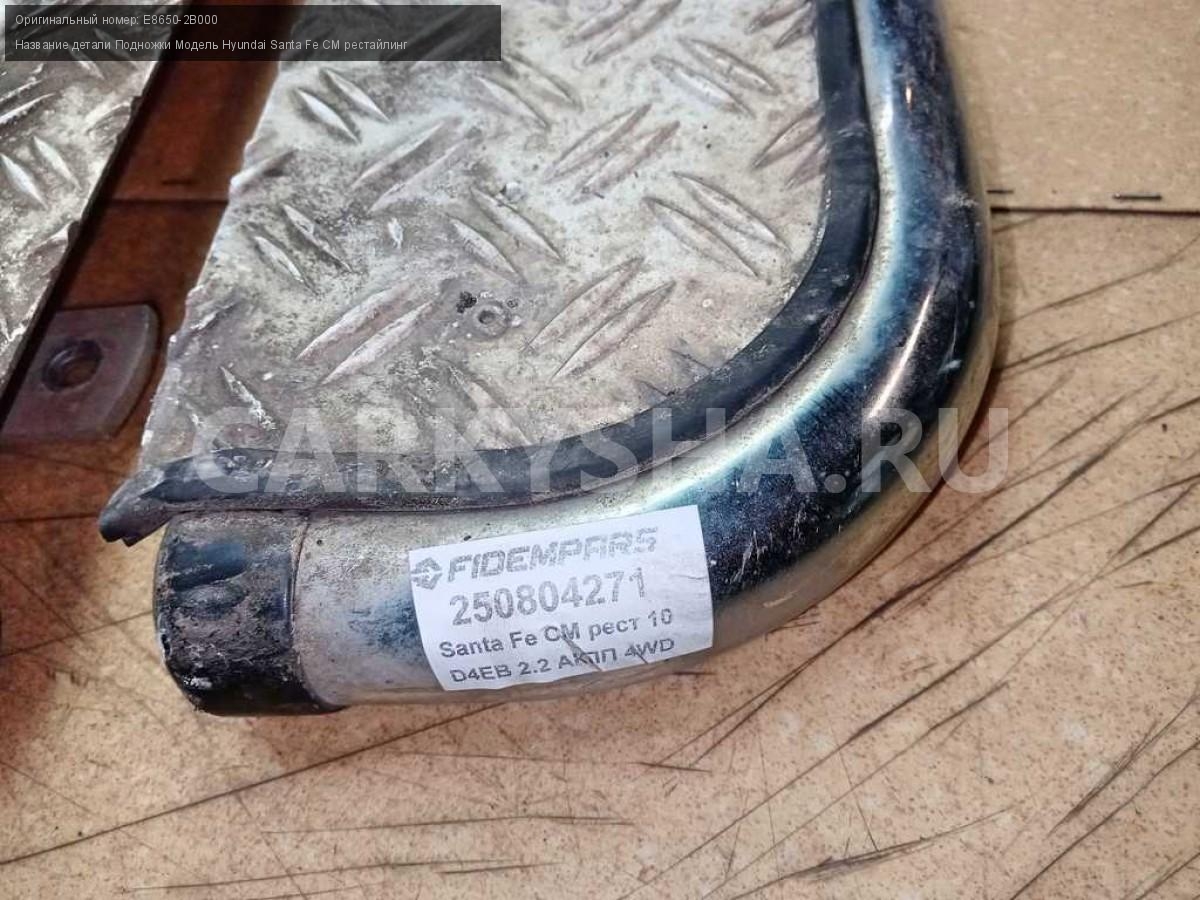 Название детали Подножки на Модель Hyundai Santa Fe CM рестайлинг Комплект 2шт. COBRA. Подножка боковая. E8650-2B000 D4HB 2.2 дизель АКПП - 6 SPEED 4WD 4WD Номер по складу:250804271