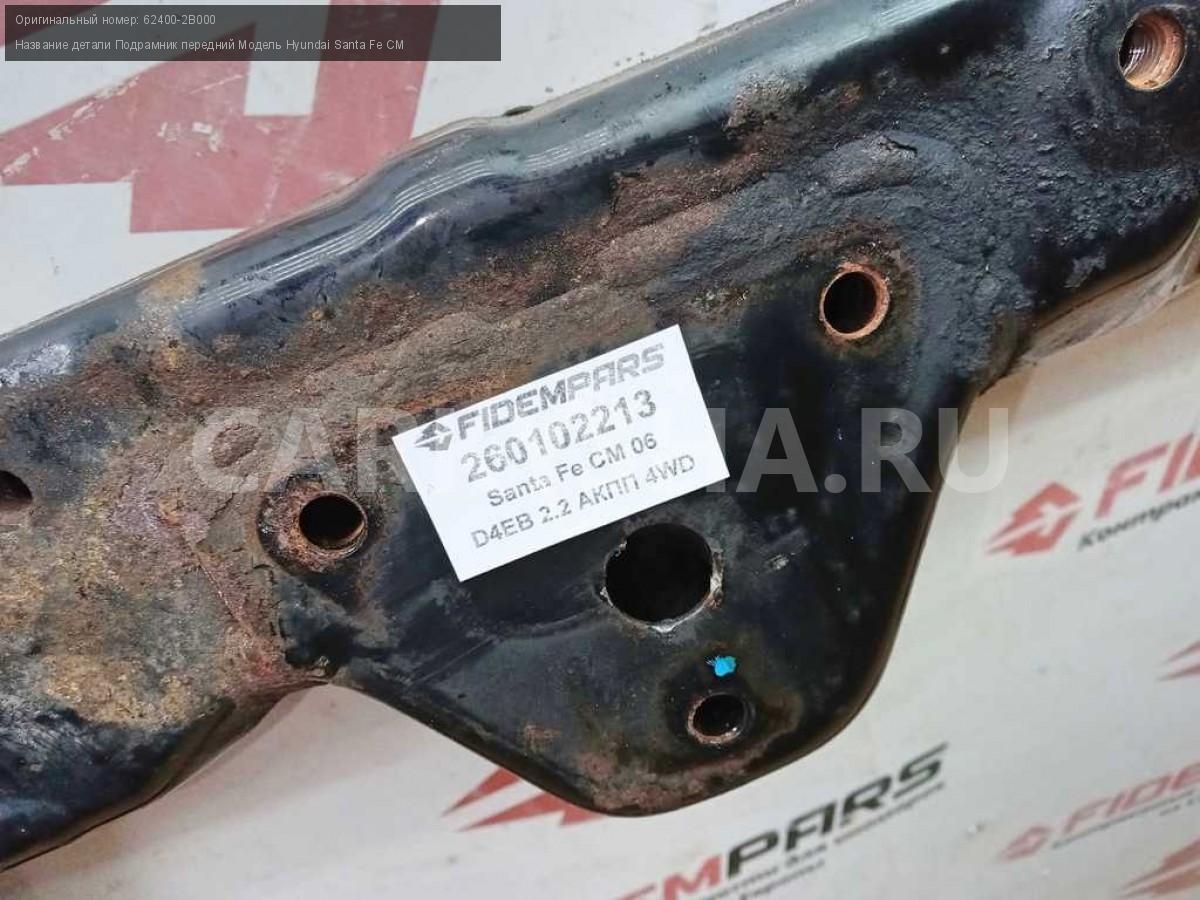 Название детали Подрамник передний на Модель Hyundai Santa Fe CM Поперечная балка. 62400-2BXXX. Подмоторная рама. 62400-2B000 D4EB 2.2 дизель АКПП - 5 SPEED 4WD 4WD Номер по складу:260102213