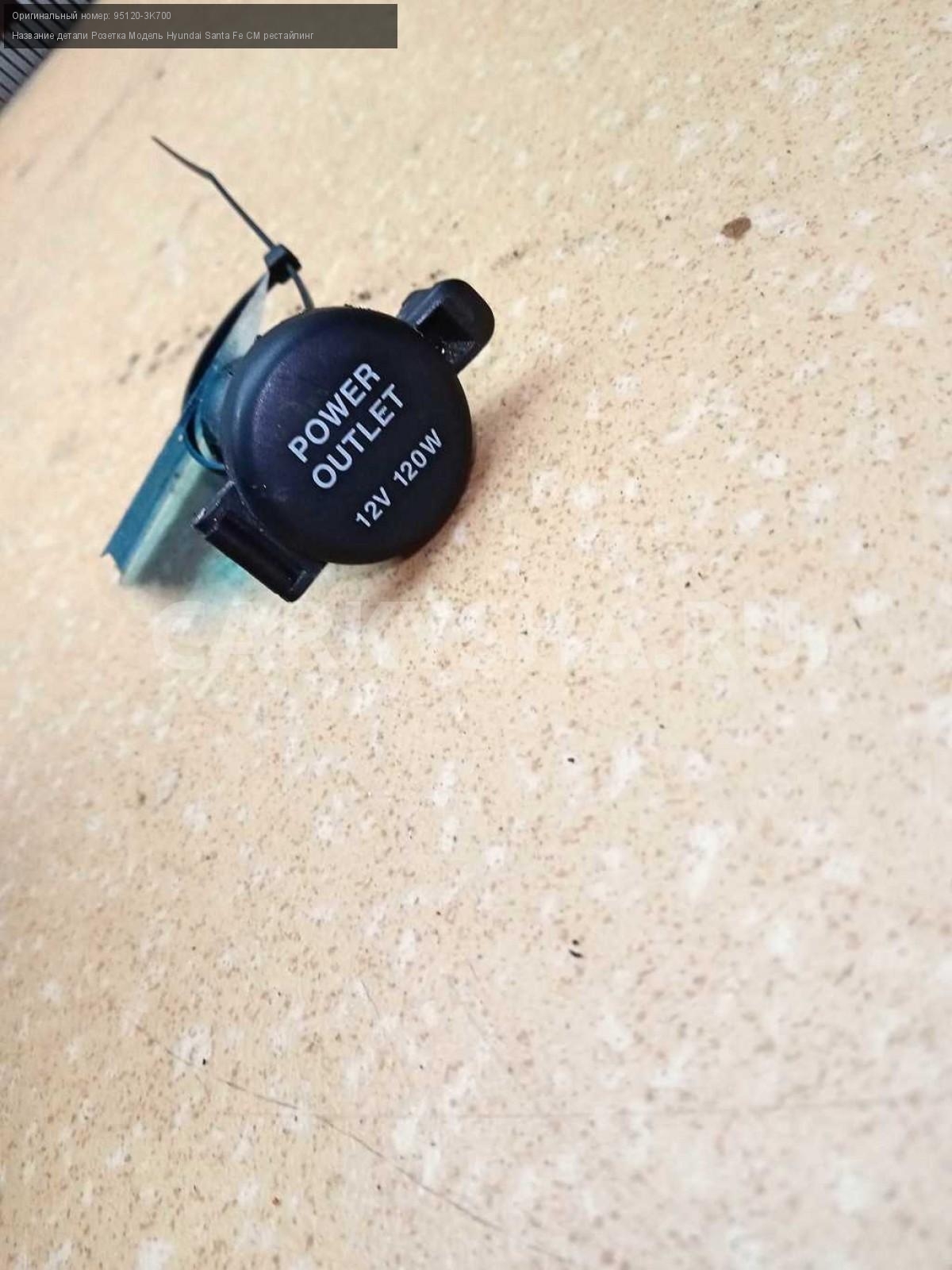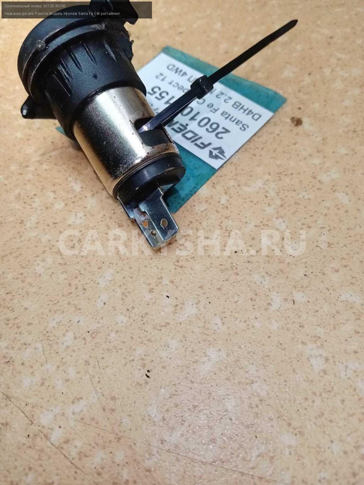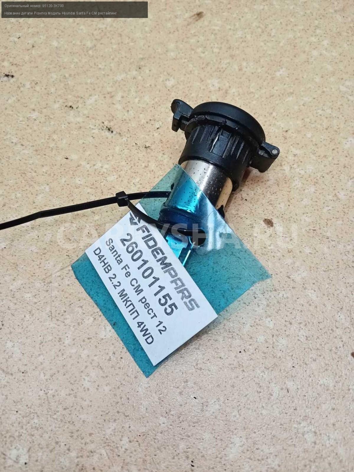 Название детали Розетка на Модель Hyundai Santa Fe CM рестайлинг Гнездо прикуривателя 95120-3K700 D4HB 2,2 дизель МКПП - 6 SPEED 4WD 4WD Номер по складу:260101155