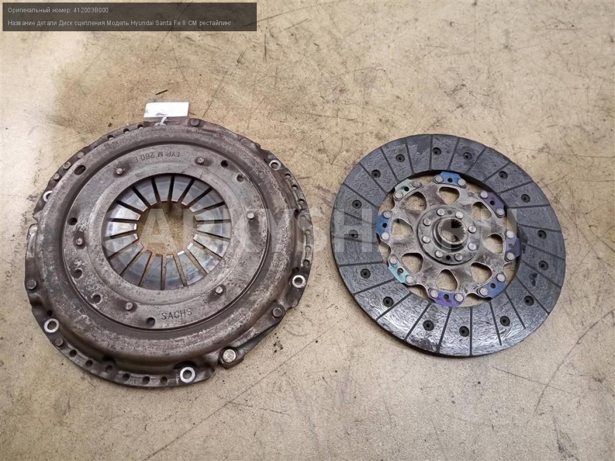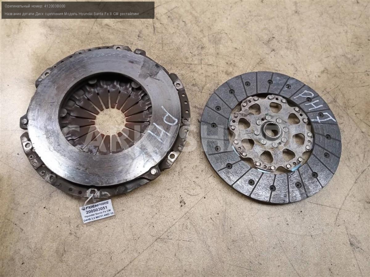 Название детали Сцепление на Модель Hyundai Santa Fe CM рестайлинг 41100-3B000. Деталь могла быть установлена на автомобили HYUNDAI SANTA FE, KIA SORENTO 412003B000 D4HB 2.2 6 SPEED MT 4WD 4WD Номер по складу:200503051
