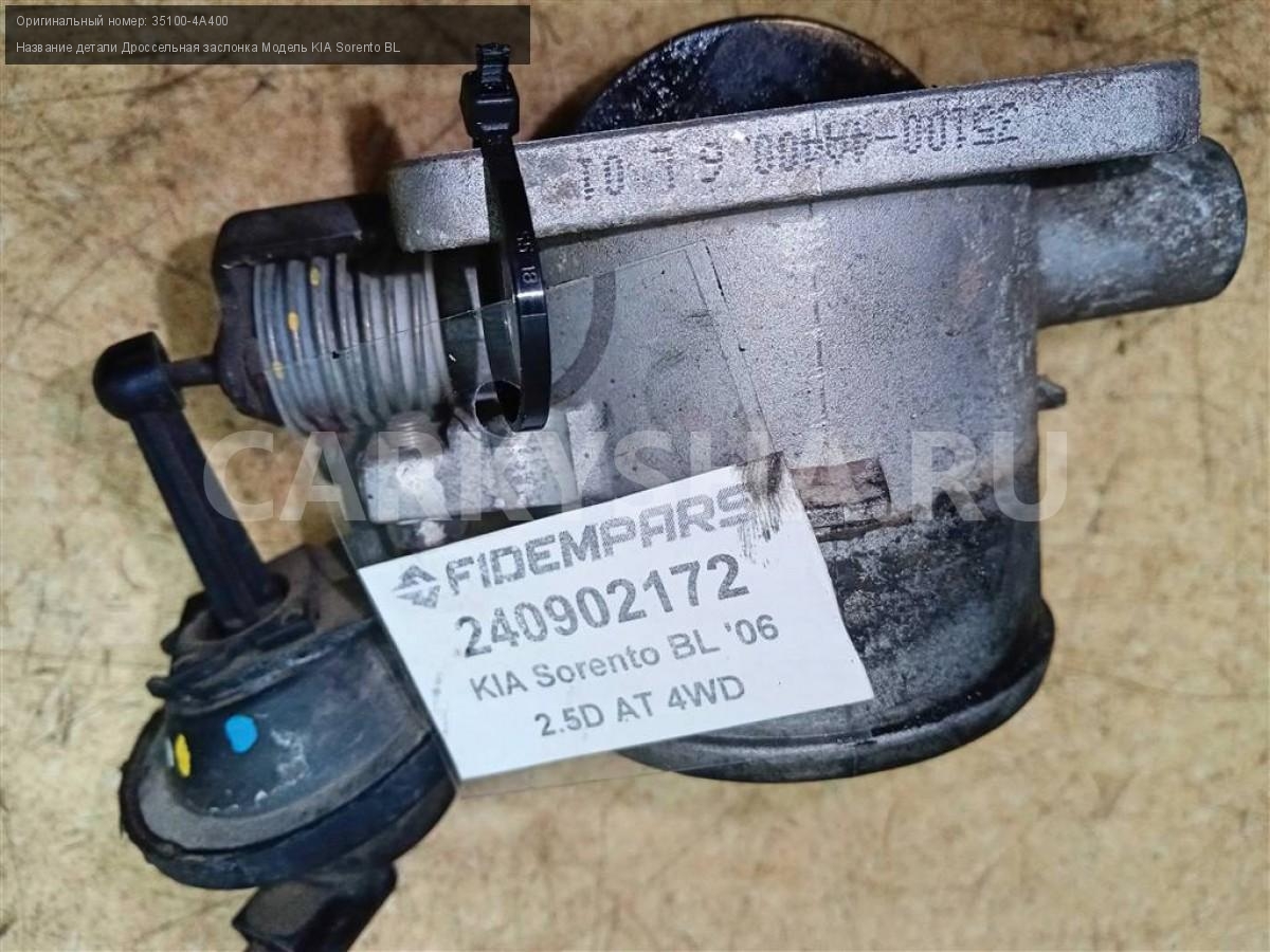 Название детали Дроссельная заслонка на Модель KIA Sorento BL Заслонка дроссельная механическая. 35100-27XXX. 35100-4A400 D4CB 2.5 TDi АКПП - 4 SPEED 4WD 4WD Номер по складу:240902172 Подходит также на: KIA Sorento BL