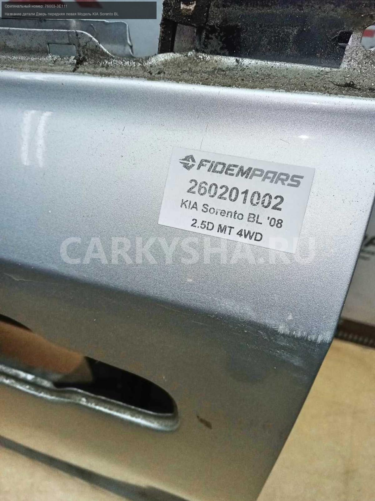 Название детали Дверь передняя левая на Модель KIA Sorento BL Код краски AV. Есть дефекты и сколы лкп, замятие. Цена за голый металл. 76003-3E111 D4CB 2.5 TDi МКПП 5 SPEED MT 4WD 4WD Номер по складу:260201002