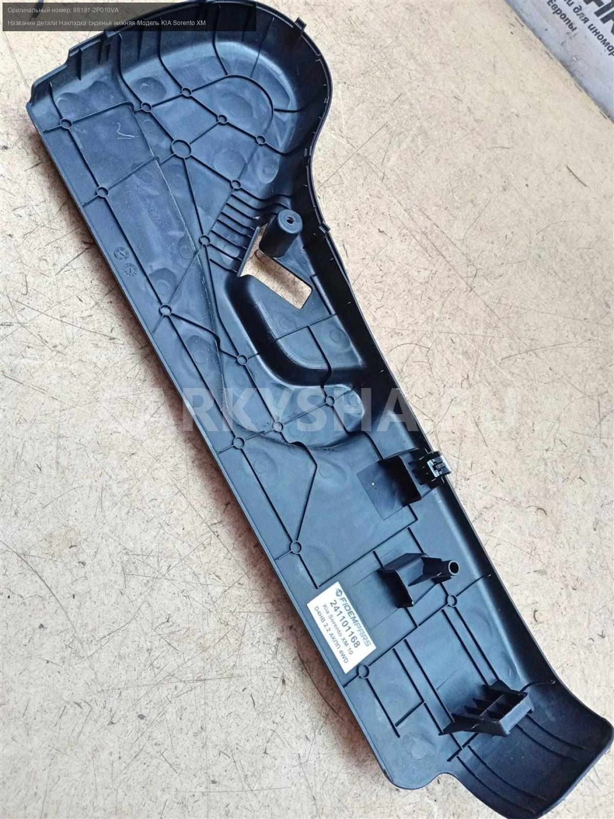 Название детали Накладка сиденья нижняя на Модель KIA Sorento XM Левая. 1717890 88181-2P010VA D4HB 2.2HDi АКПП полный Номер по складу:241101168 Подходит также на: KIA Sorento XM