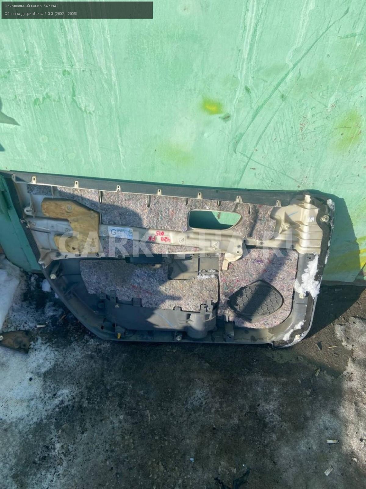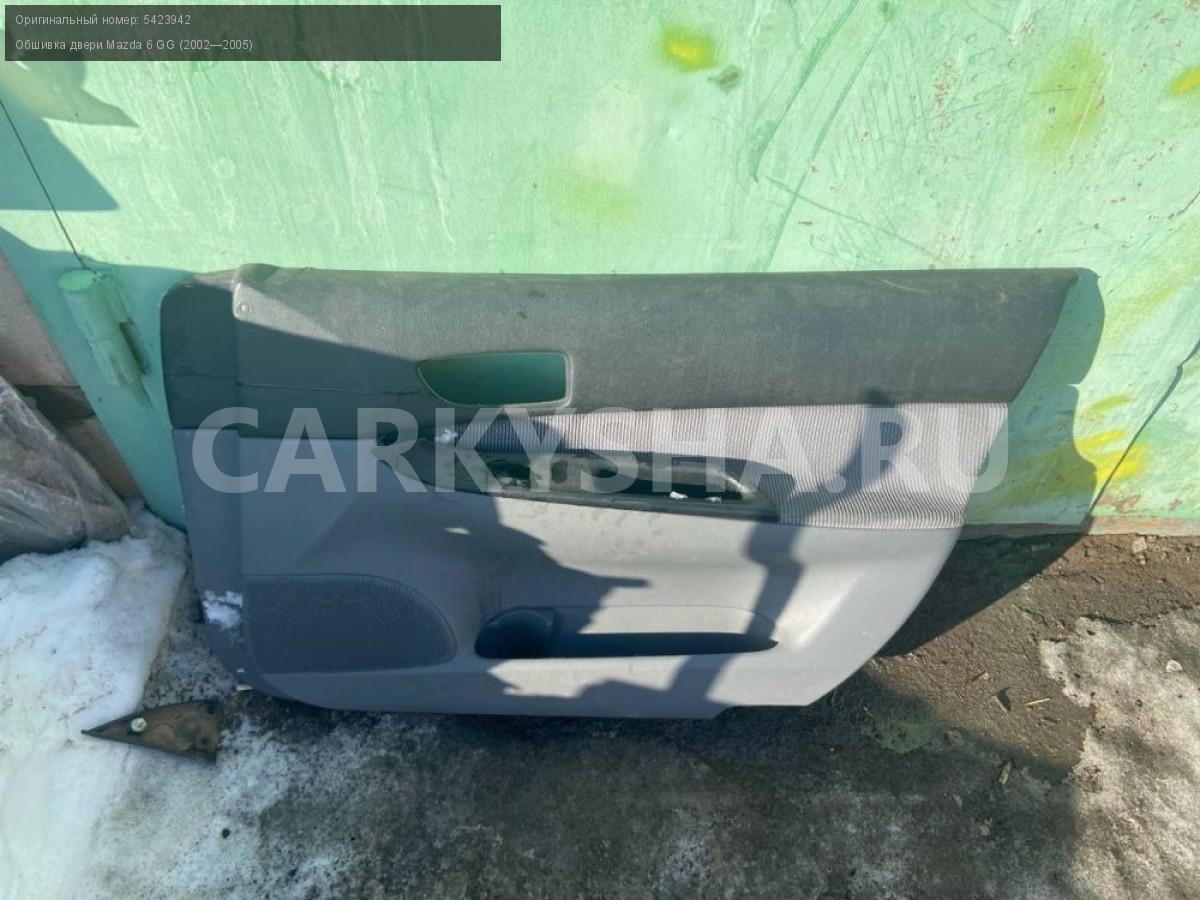 Mazda 6 GG, карта двери передней правой.\nАртикул: 4347\n\nОриг. номер: 5423942\nПроизводитель: MAZDA\nПримечание:Мазда 6 GG, карта двери передней правой , бу. \n\nМарка: Mazda\nМодель: 6 GG (2002—2005)\nГод выпуска: 2003\nКузов тип: Седан\nДвигатель номер: L3\nМодель двигателя: инжектор\nОбъем: 2.3\nТопливо: Бензин\nКоробка: Автомат\nЦвет: Синий\nПраво/Лево: Право\nПеред/Зад: Перед\nСовместимости: Mazda 6 GG (2002—2005) 2.3 AT (166 л.с.)\nСовместимость: