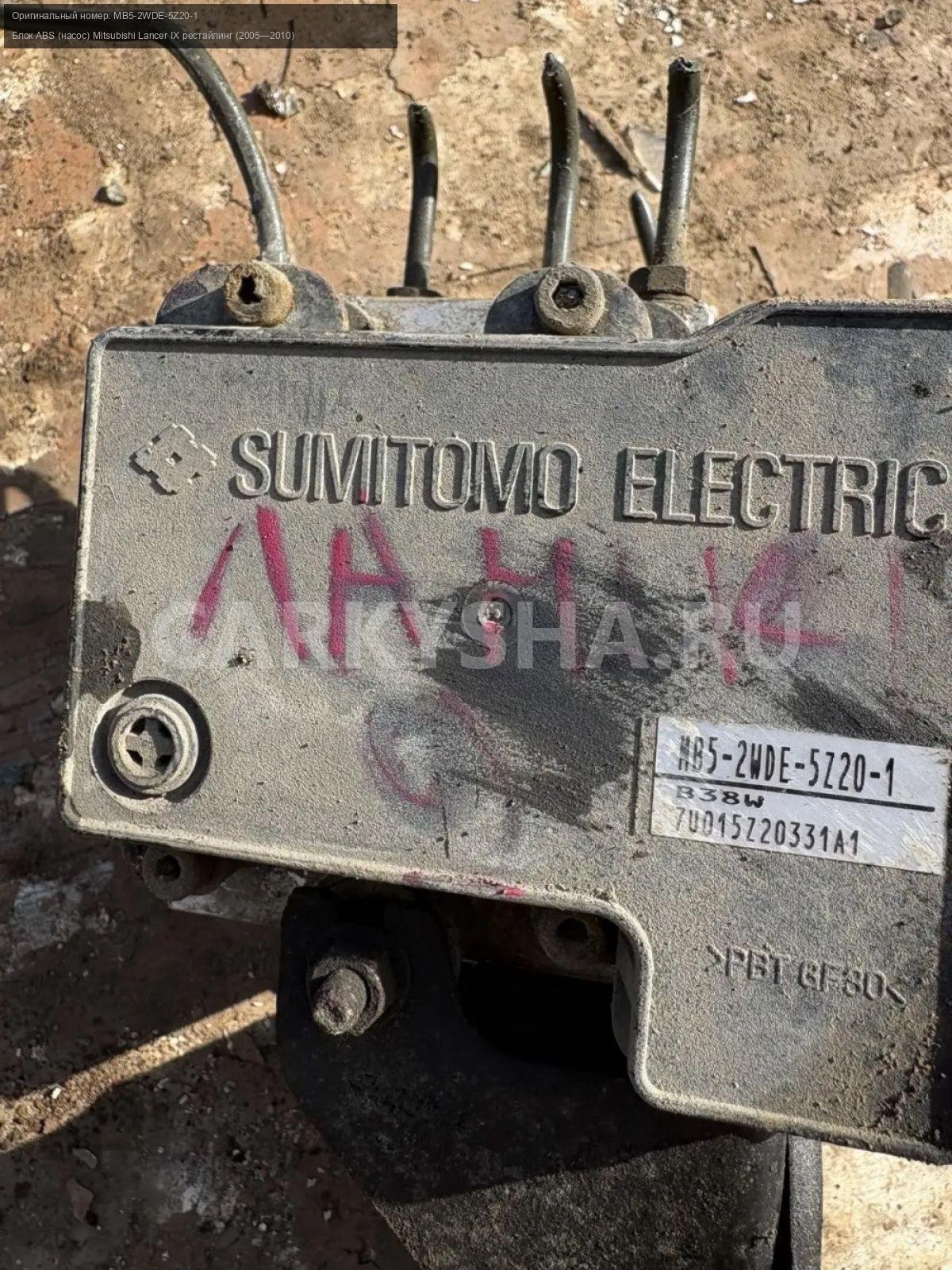 Mitsubishi Lancer IX , блок ABS.\nАртикул: 10189\n\nОриг. номер: MB5-2WDE-5Z20-1\nПроизводитель: MITSUBISHI\nПримечание:Митсубиси Лансер 9, блок АБС, б/у. \n\nМарка: Mitsubishi\nМодель: Lancer IX рестайлинг (2005—2010)\nГод выпуска: 2006\nКузов тип: Универсал\nДвигатель номер: 4G18\nМодель двигателя: инжектор\nОбъем: 1.6\nТопливо: Бензин\nКоробка: Механика\nЦвет: Серебристый\nСовместимости: Mitsubishi Lancer IX рестайлинг (2005—2010) 1.6 MT (98 л.с.)\nСовместимость: