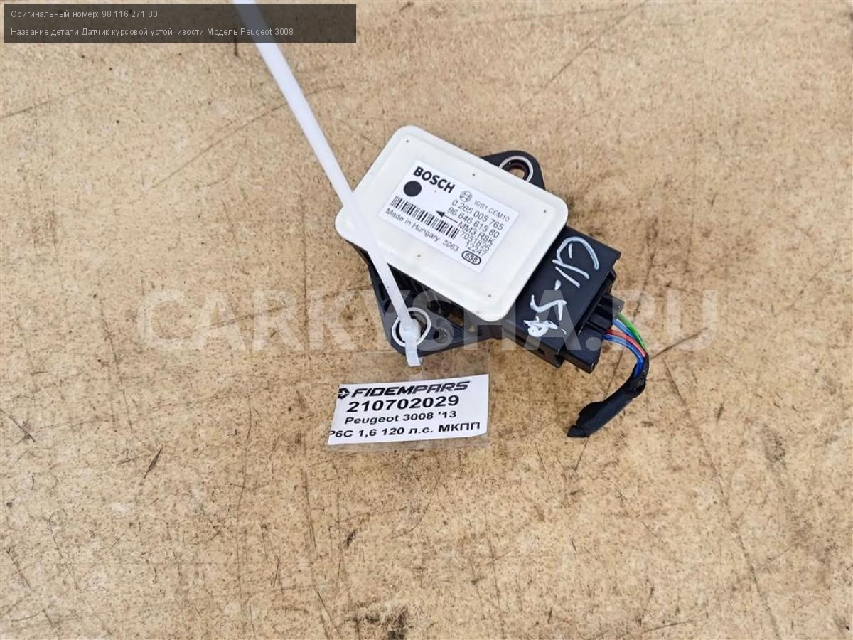 Название детали Датчик курсовой устойчивости Модель Peugeot 3008