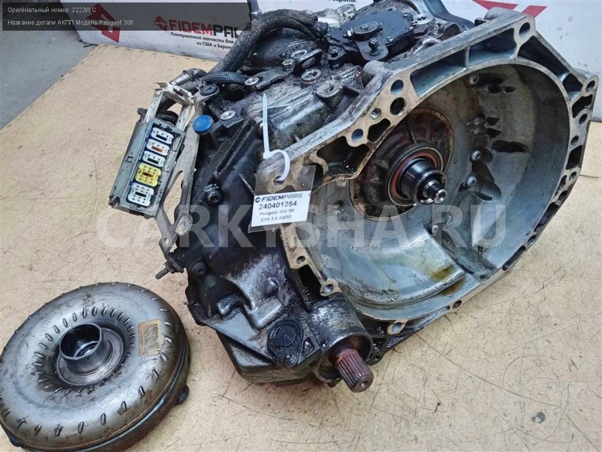 Название детали АКПП на Модель Peugeot 308 TA96 FAC 230 112. В составе: гидротрансформатор 2001E9. Коробка передач. Автомат. Сальники под замену. Не пиналась 2222WC EP6 1.6 120 л.с. АКПП передний Номер по складу:240401254 Подходит также на: Peugeot 308
