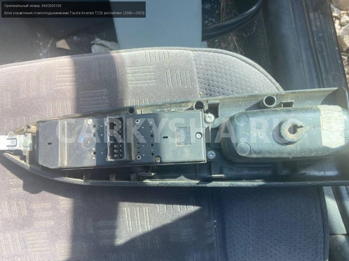 Toyota Avensis T220 рест, блок упр. стеклоподъемн\nАртикул: 2681\n\nОриг. номер: 8482005100\nПроизводитель: TOYOTA\nПримечание:Тойота Авенсис Т220 рестайлинг, блок управления стеклоподъёмниками, б/у\n\nМарка: Toyota\nМодель: Avensis T220 рестайлинг (2000—2003)\nГод выпуска: 2001\nКузов тип: Седан\nДвигатель номер: 1ZZ-FE\nМодель двигателя: инжектор\nОбъем: 1.8\nТопливо: Бензин\nКоробка: Механика\nЦвет: Синий\nСовместимости: Toyota Avensis T220 рестайлинг (2000—2003) 1.8 MT (129 л.с.)\nСовместимость: