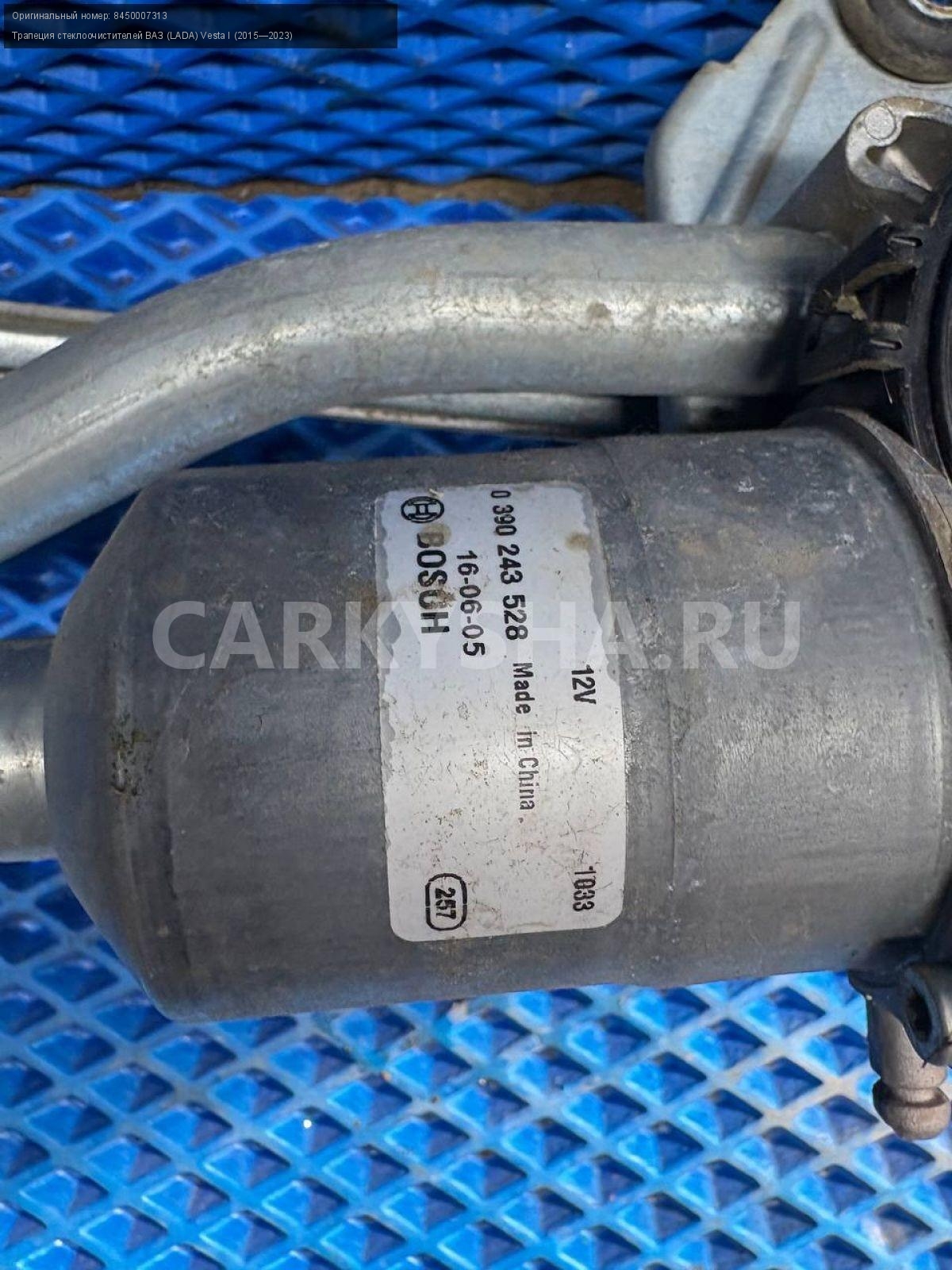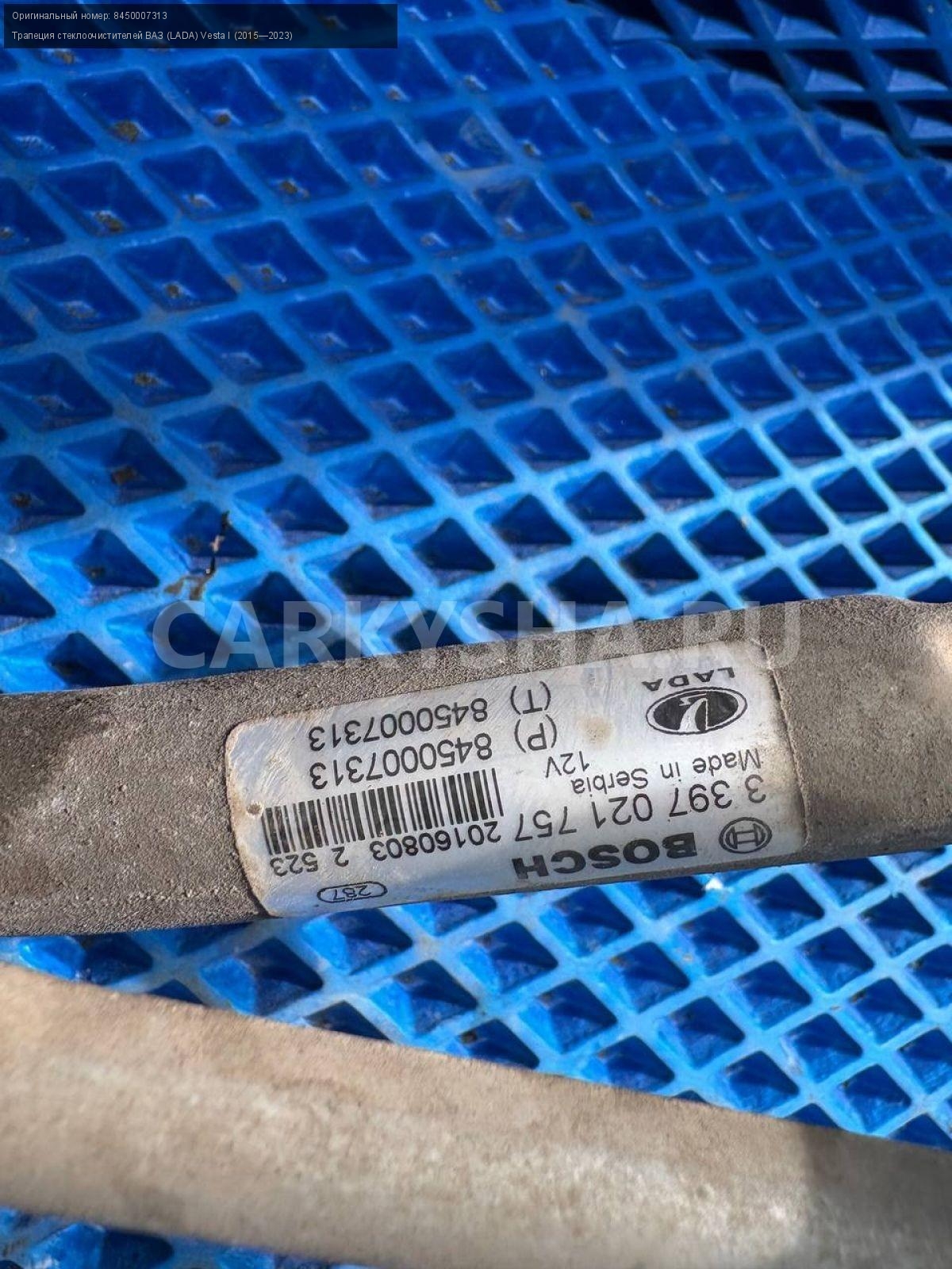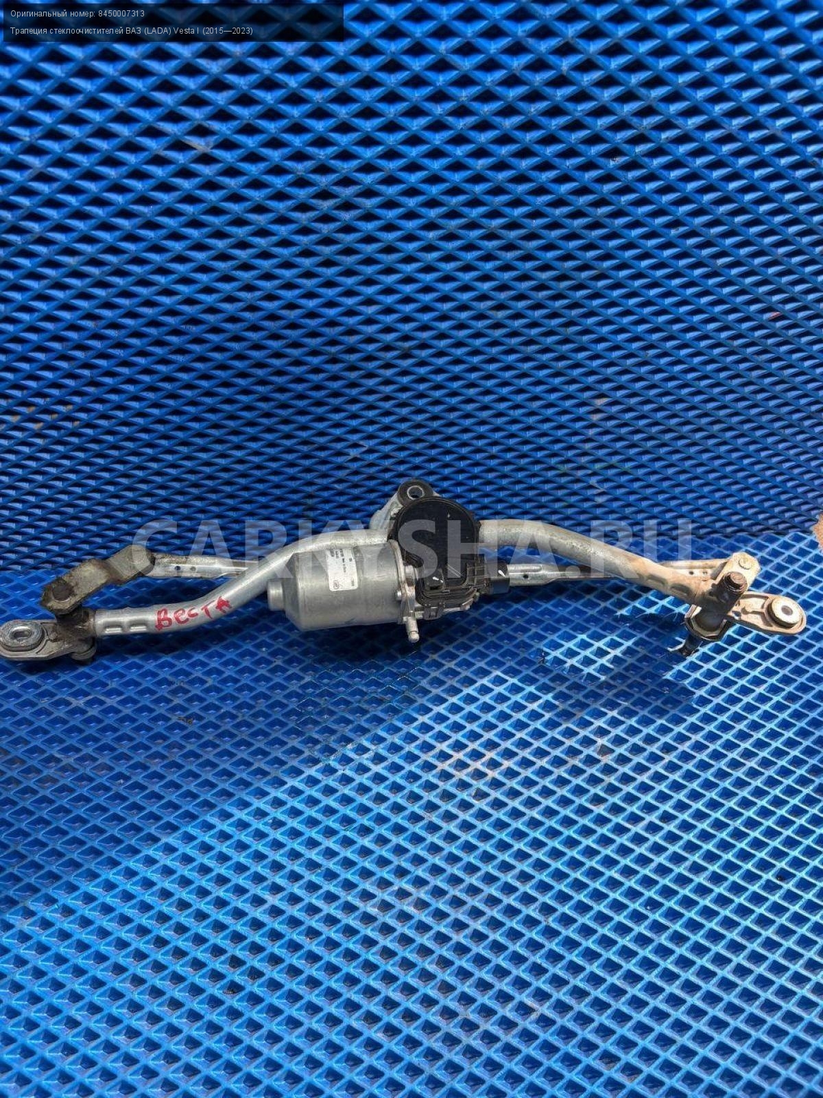 ВАЗ (LADA) Vesta, трапеция дворников с моторчиком\nАртикул: 8580\n\nОриг. номер: 8450007313\nПроизводитель: АвтоВАЗ\nПримечание:Ваз Лада Веста, трапеция дворников, стеклоочистителей , в сборе с моторчиком, б/у. \n\nМарка: ВАЗ (LADA)\nМодель: Vesta I (2015—2023)\nГод выпуска: 2017\nКузов тип: Седан\nДвигатель номер: 21129\nМодель двигателя: инжектор\nОбъем: 1.6\nТопливо: Бензин\nКоробка: Робот\nЦвет: Белый\nСовместимости: ВАЗ (LADA) Vesta I (2015—2023) 1.6 AMT (106 л.с.)\nСовместимость: