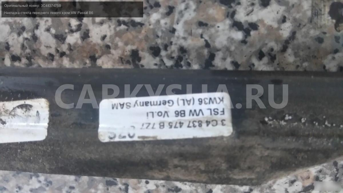 Примечание:Накладка стекла переднего левого хром VW Passat Фольксваген B6,код 3C4837475B 3C4837431F.